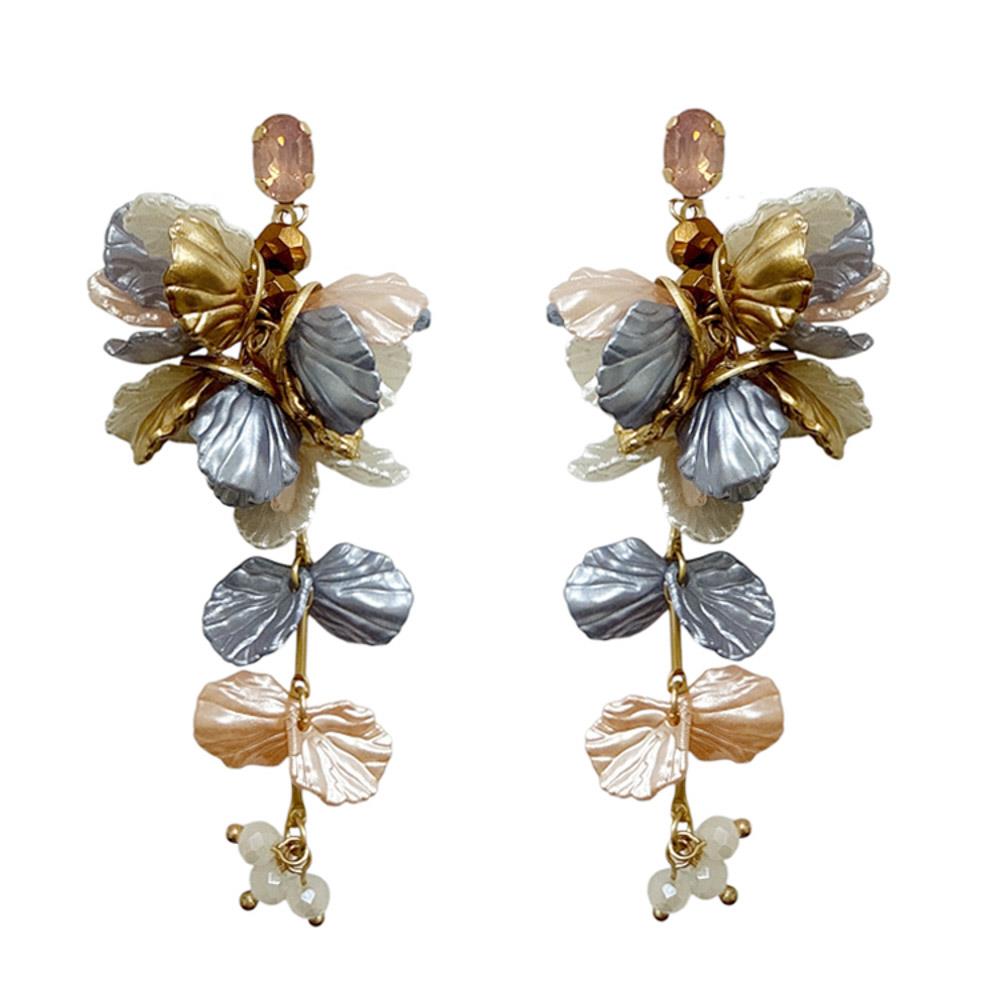 FLOWER CLUSTER PEARL DANGLE EARRING
