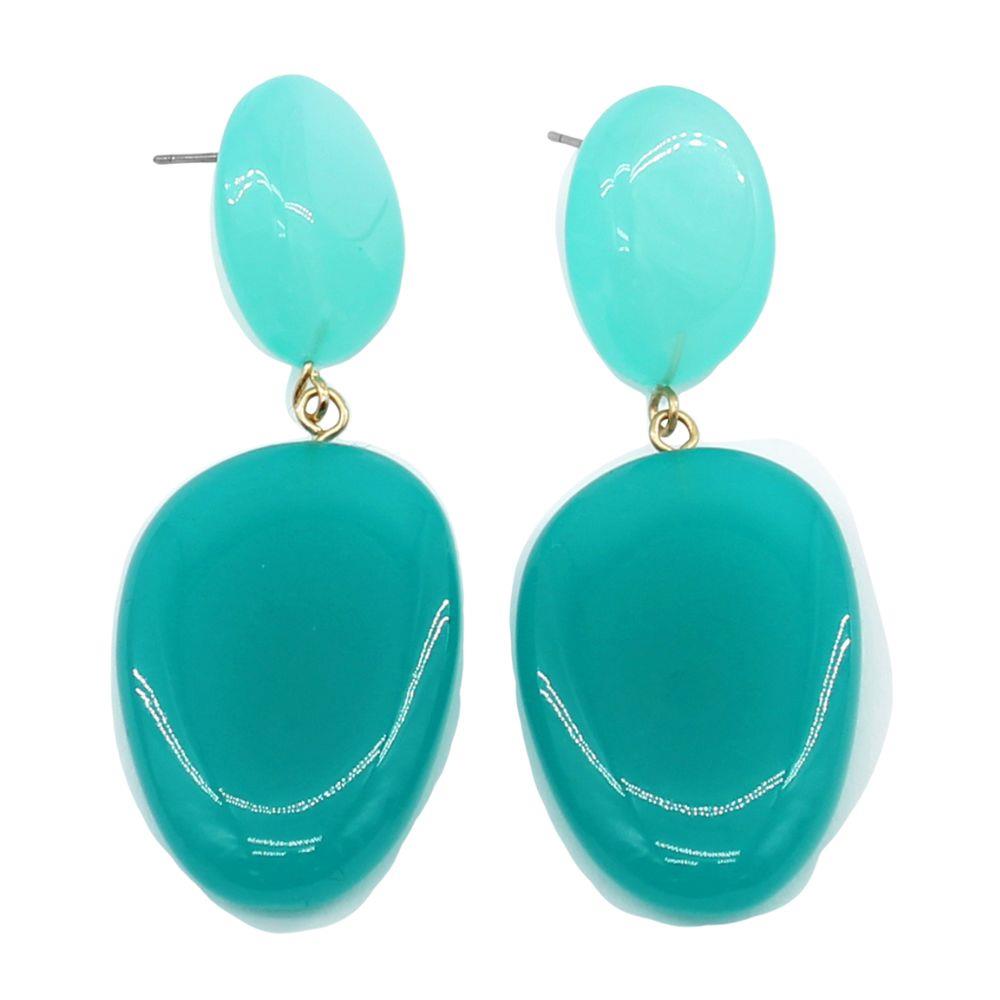 TURQUOISE RESIN OVAL DANGLE POST EARRING
