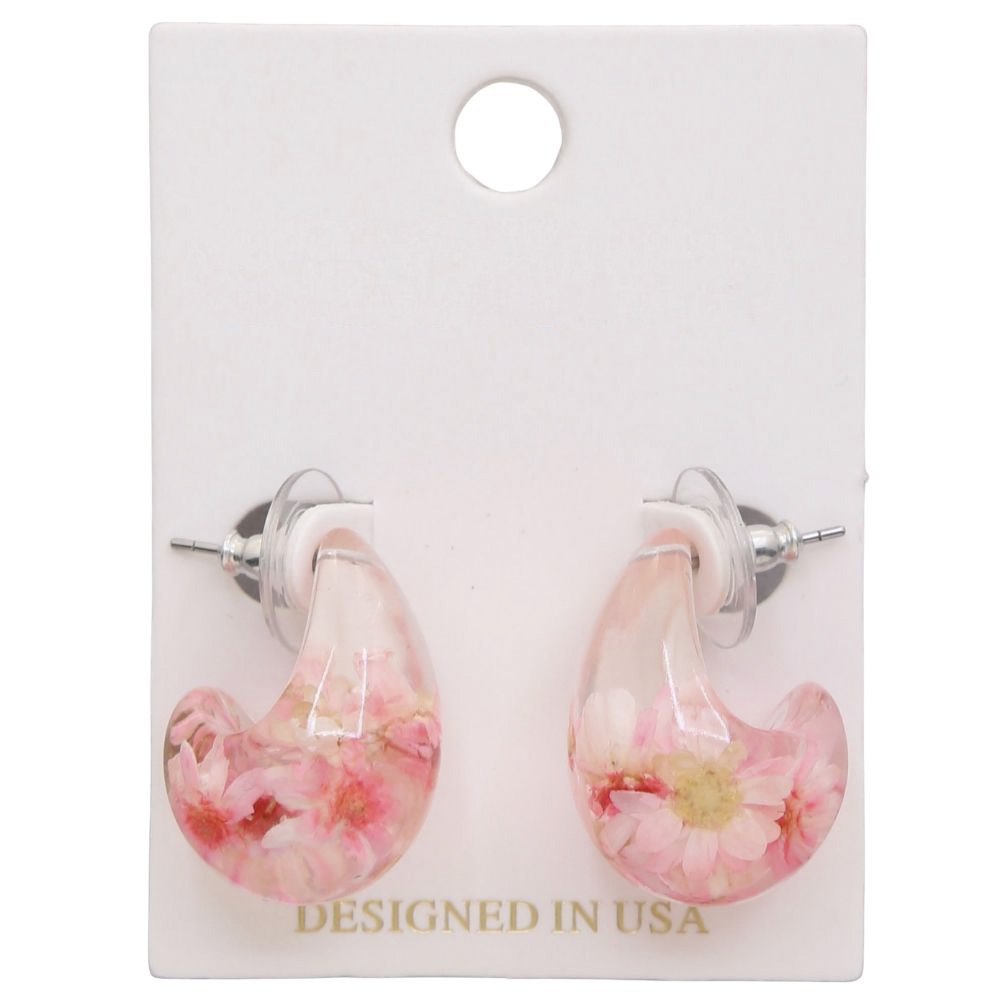 ENCAPSULATED FLOWER TEARDROP DOME EARRING