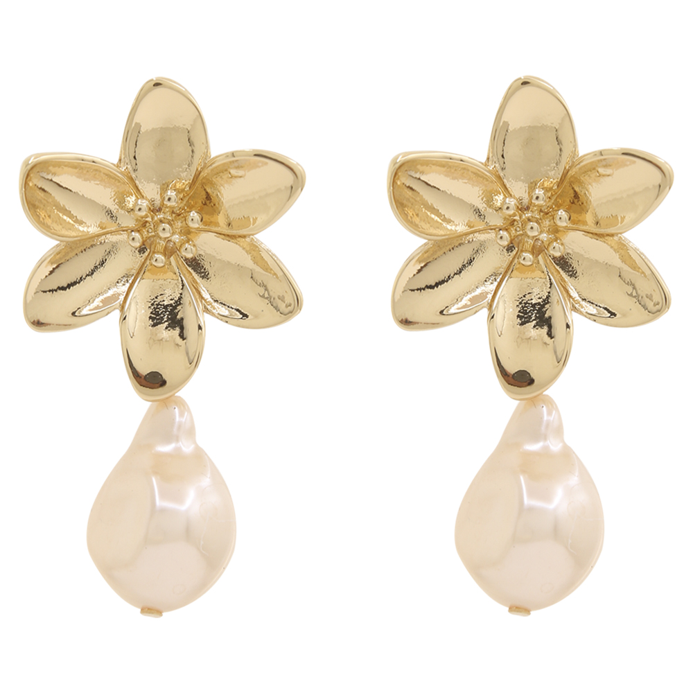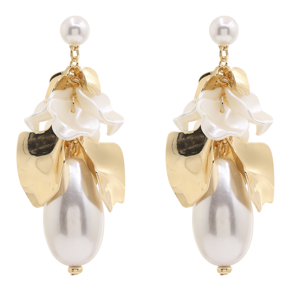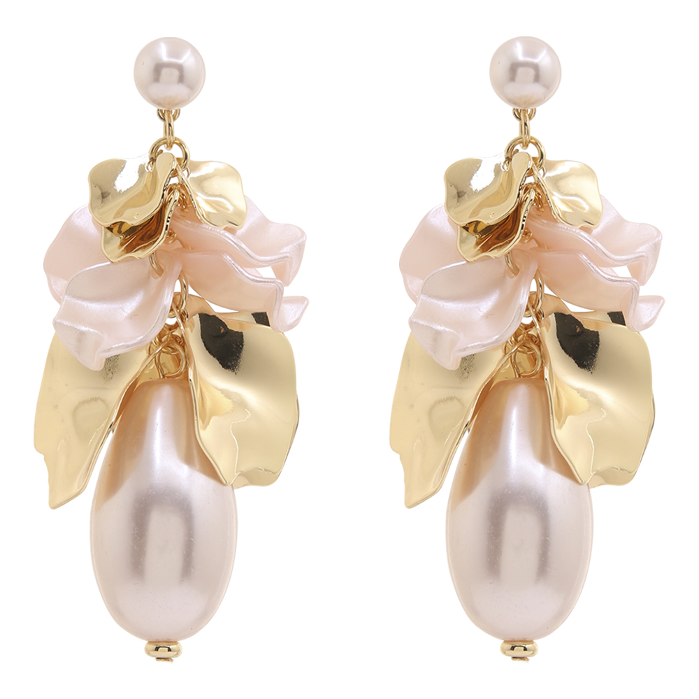FLORAL PEARL METAL MIX DANGLE EARRING
