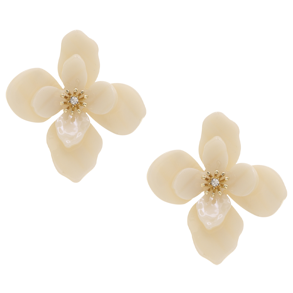 FLOWER CLEAR RESIN TEARDROP EARRING