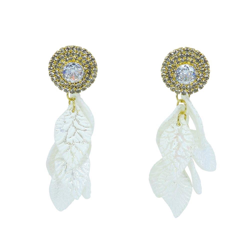 METAL RHINESTONE LEAF DROP DANGLE EARRING