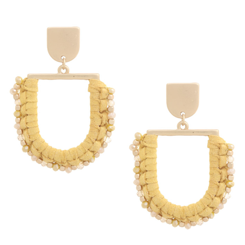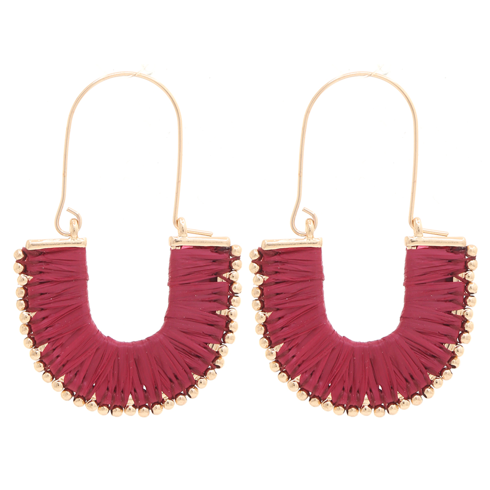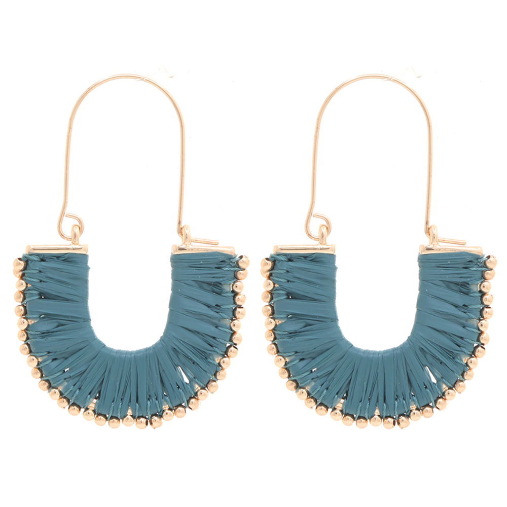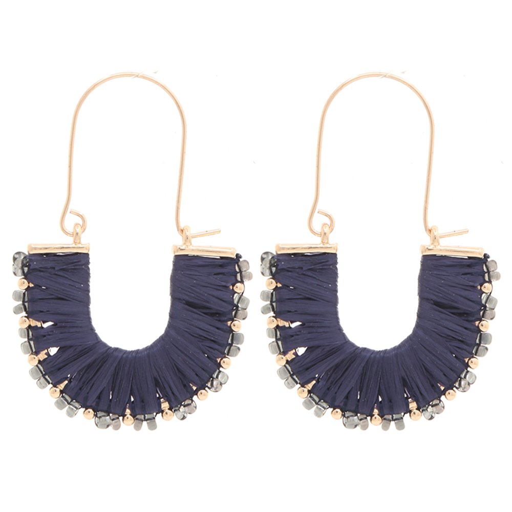 RAFFIA WRAPPED BEADED EDGE DANGLE EARRING