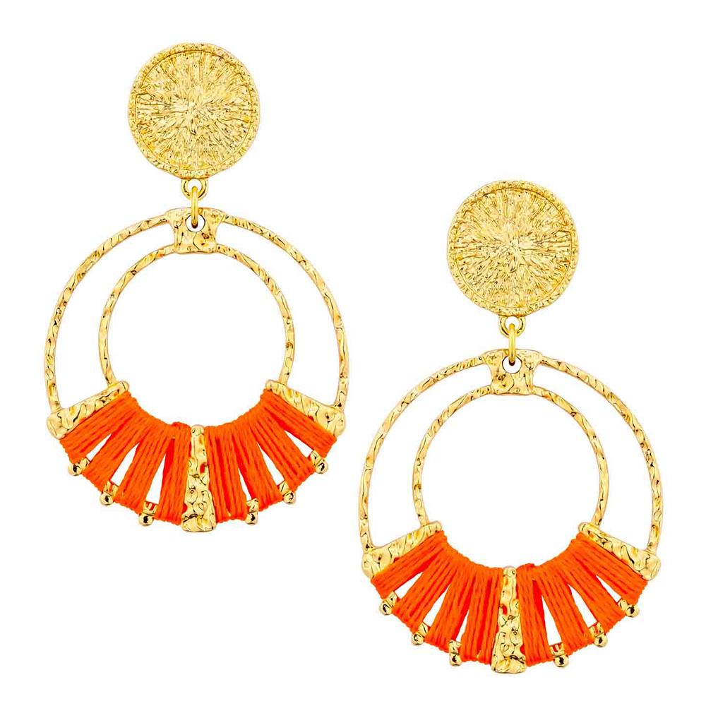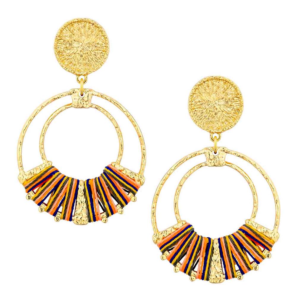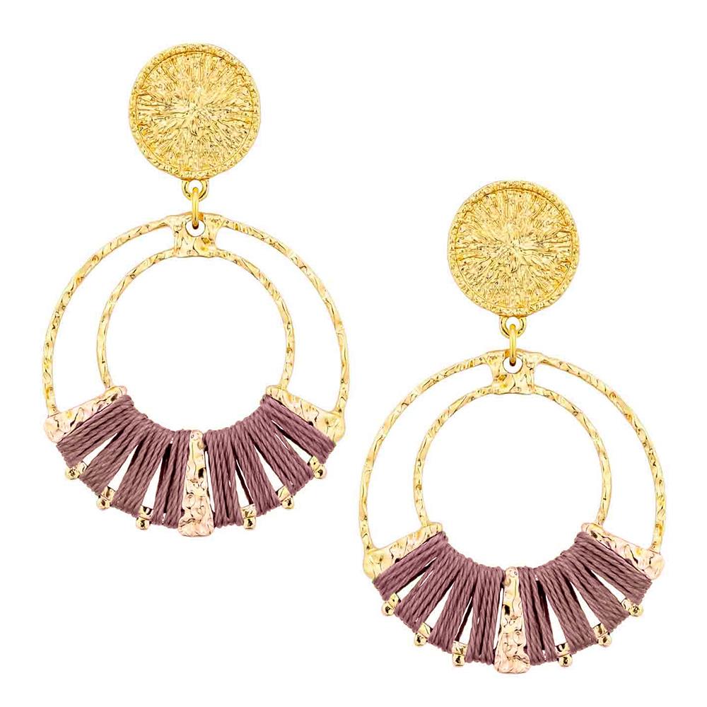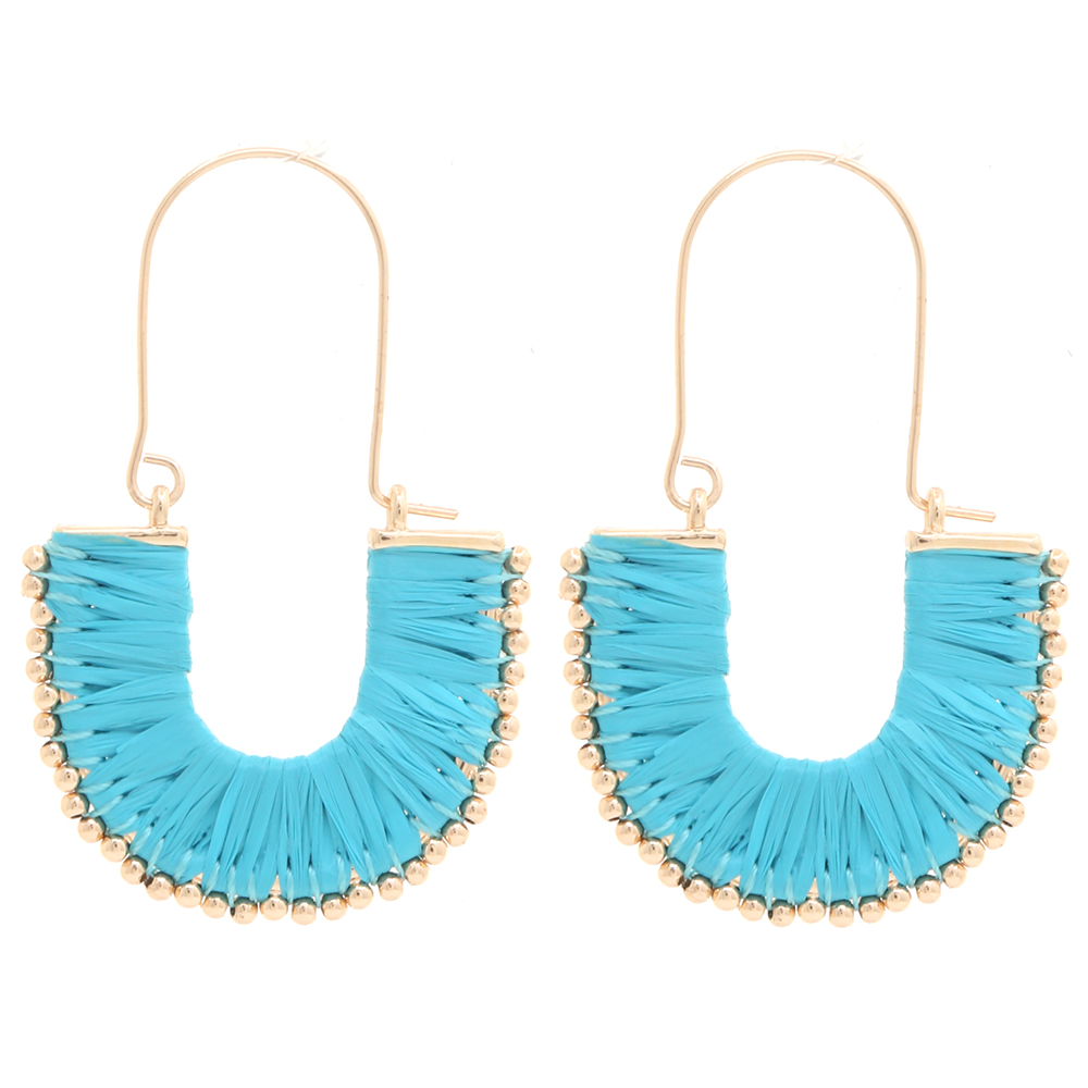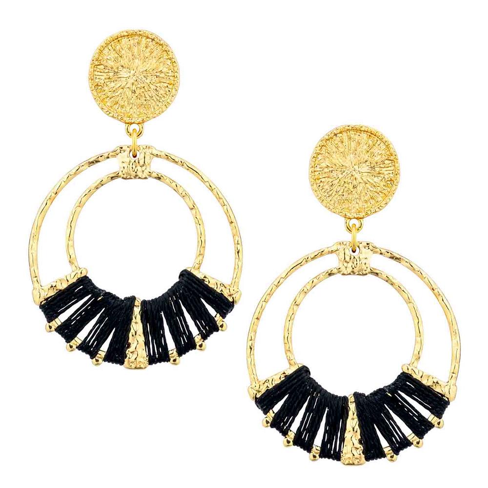 DOUBLE CIRCLE RAFFIA METAL DANGLE EARRING