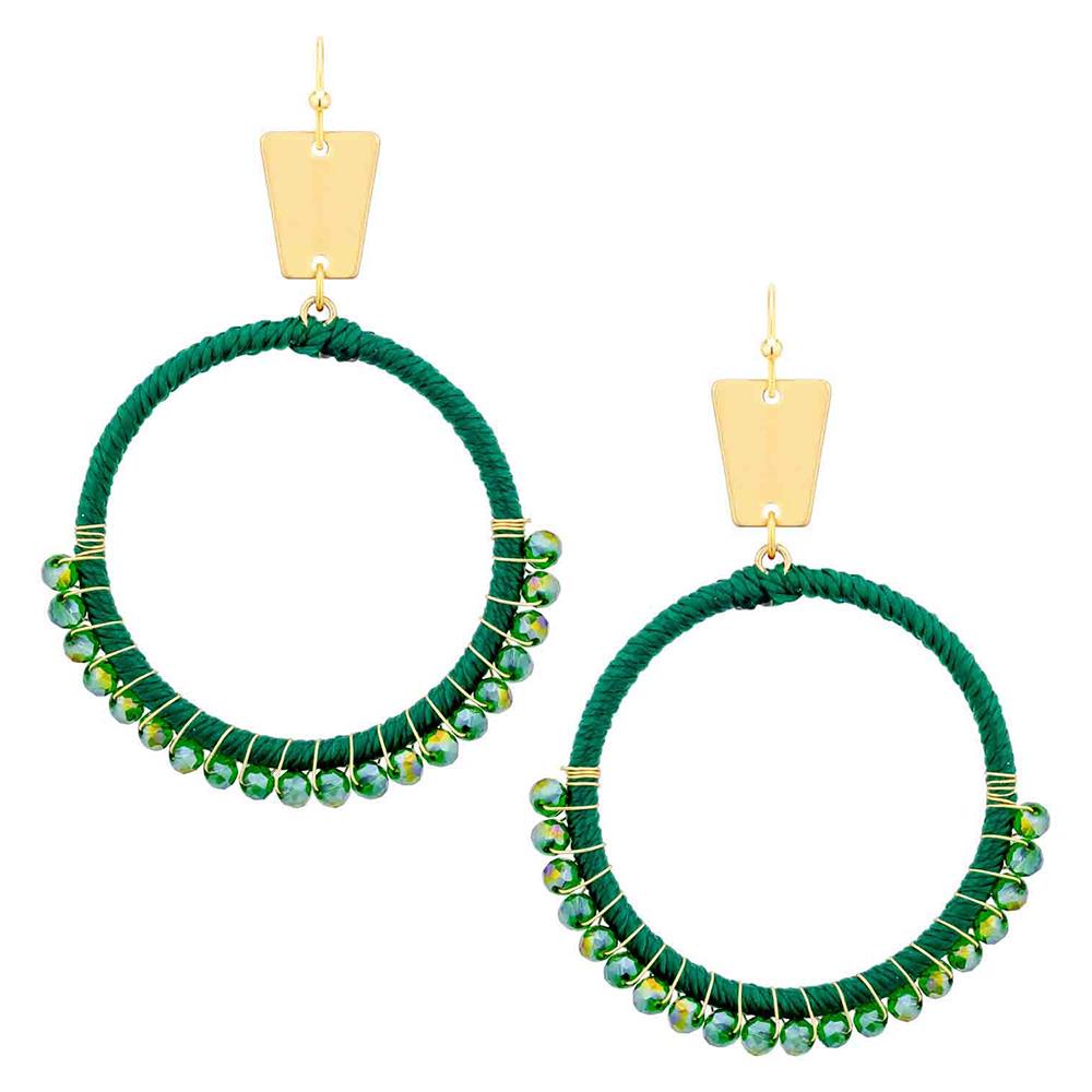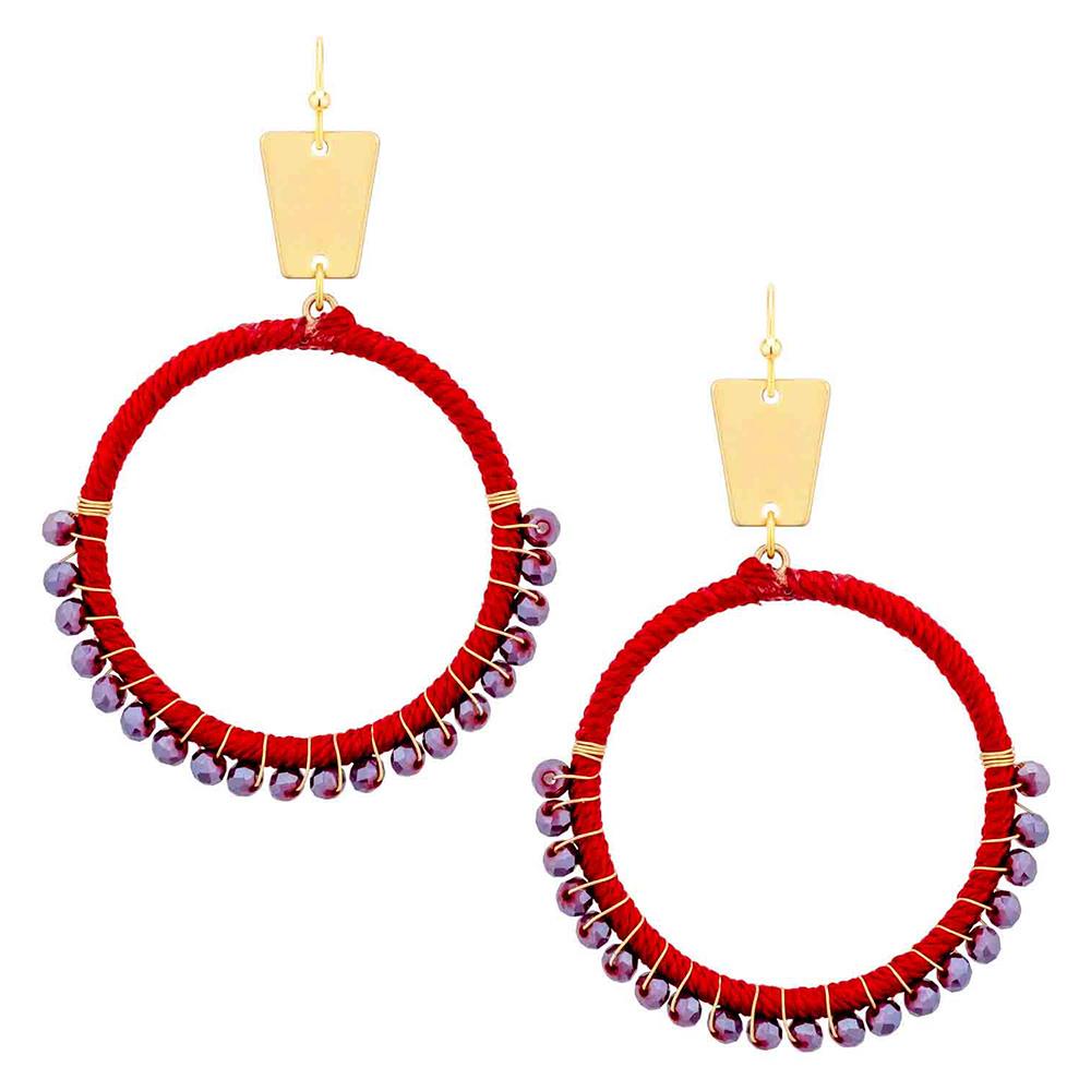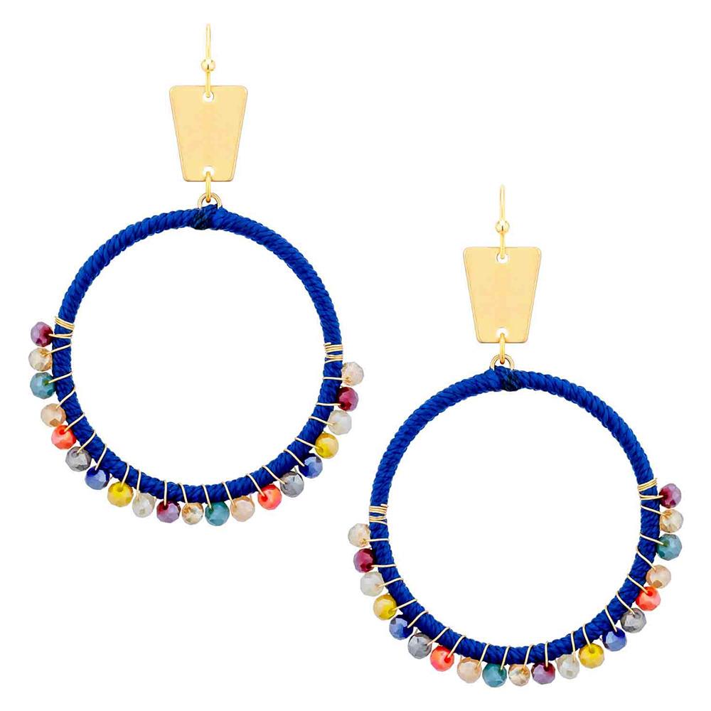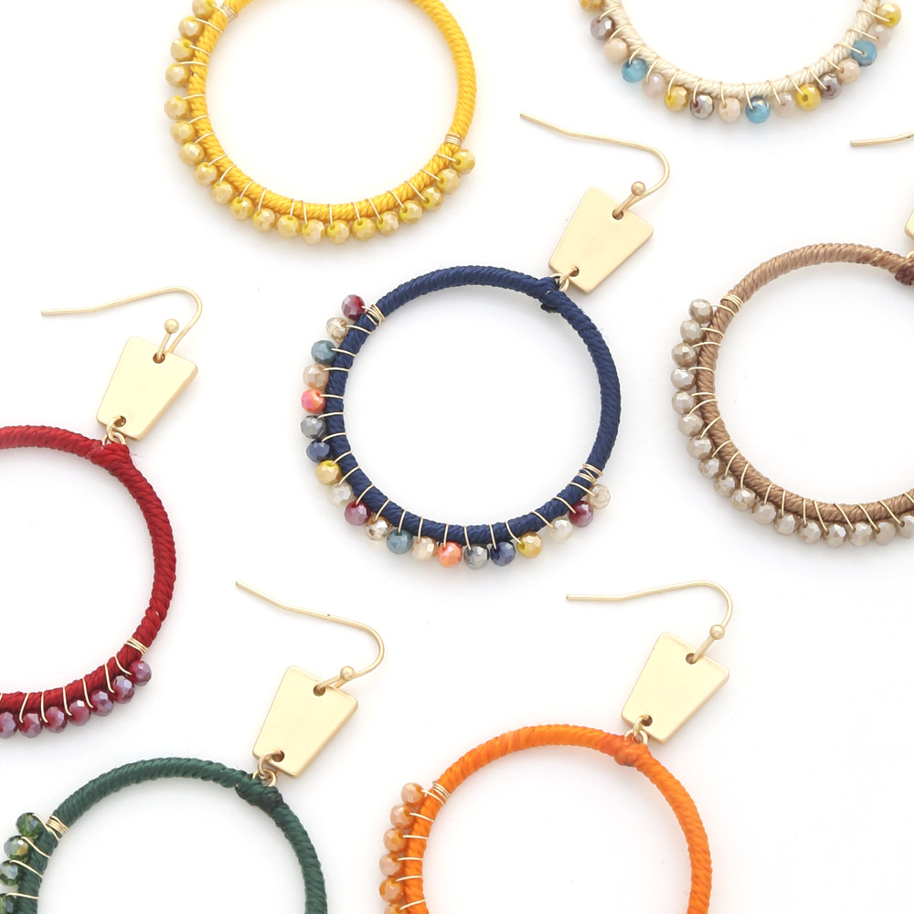 THREAD GLASS BEAD METAL CIRCLE EARRING