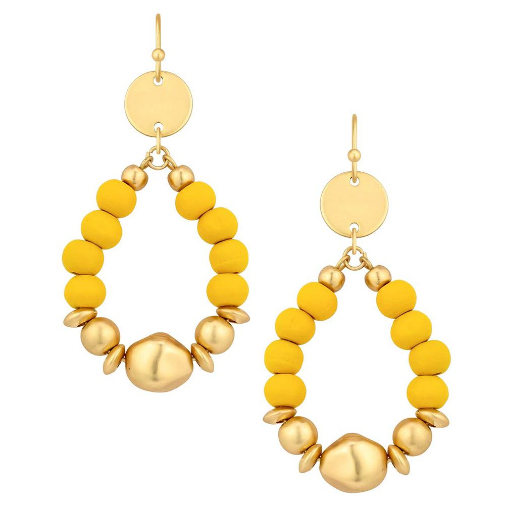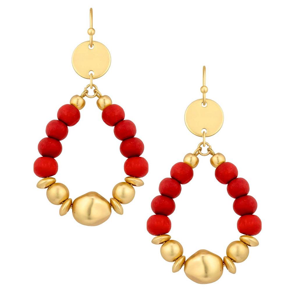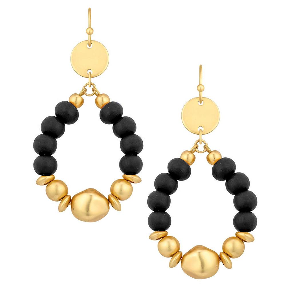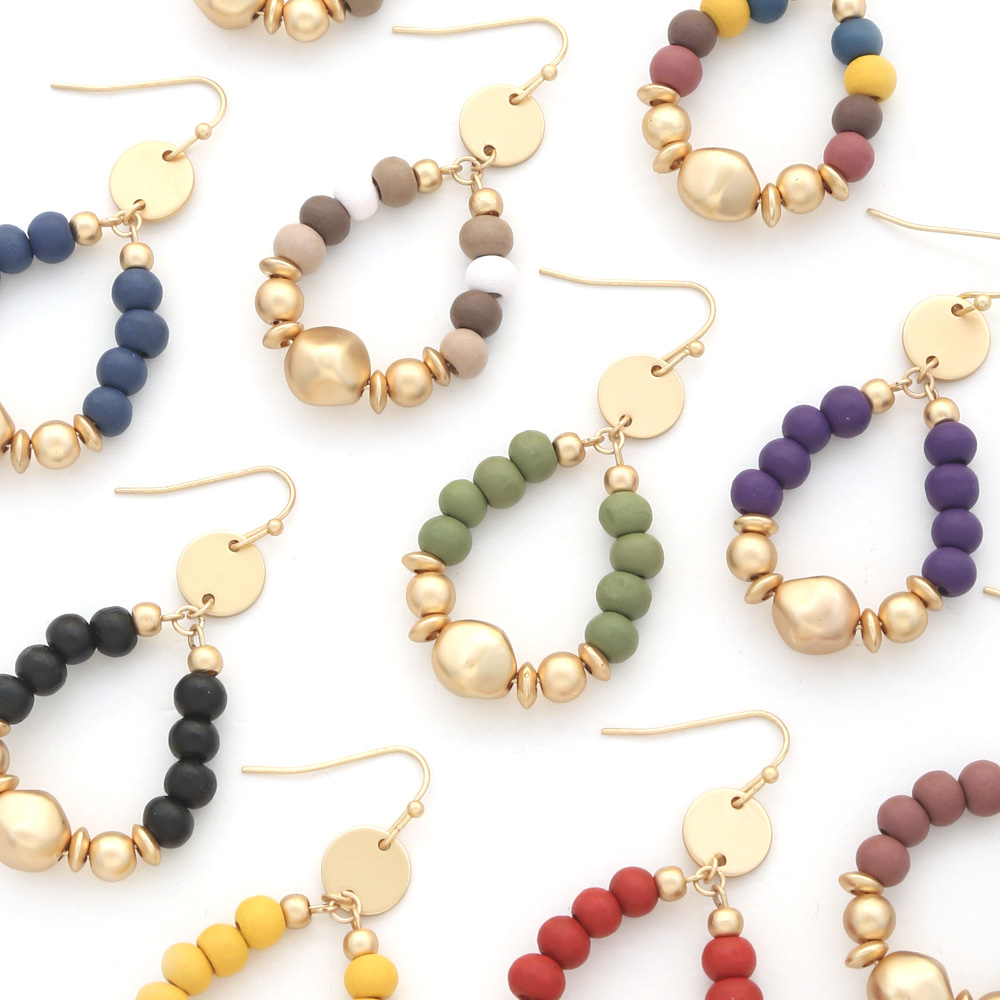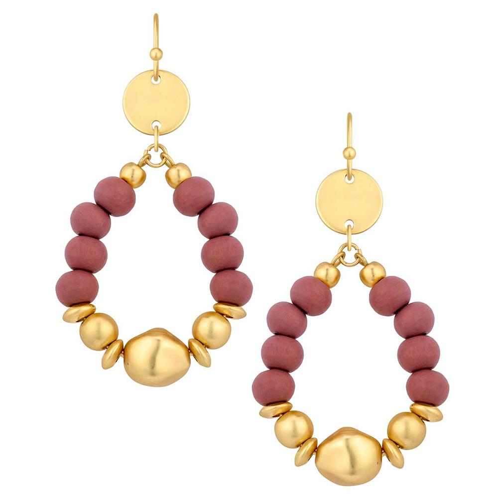 WOOD BEAD METAL TEARDROP EARRING