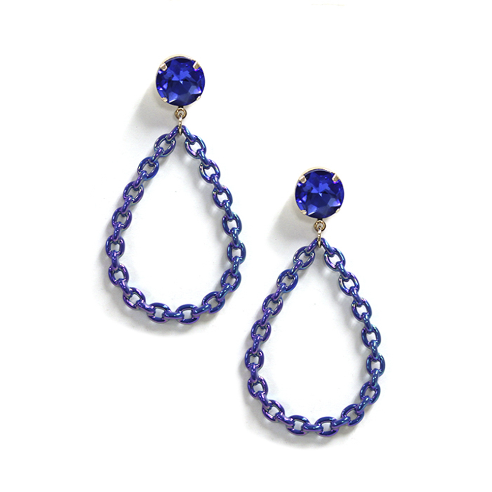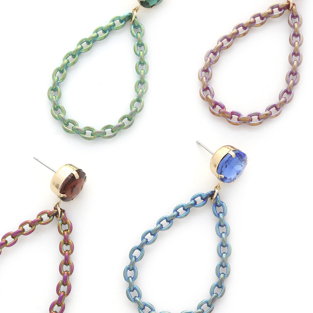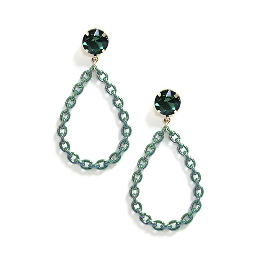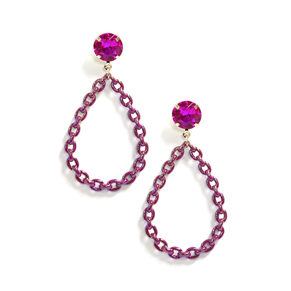 STONE COLOR METAL CHAIN TEARDROP DANGLE EARRING