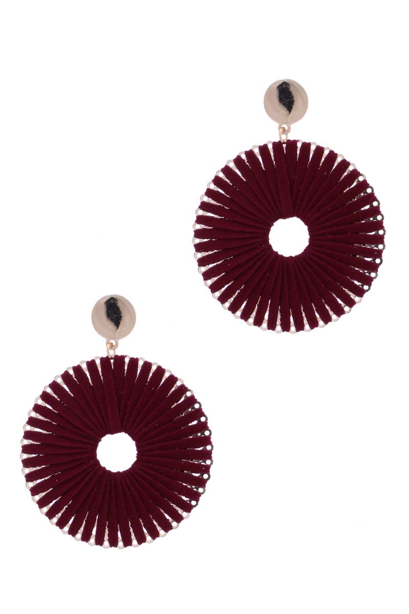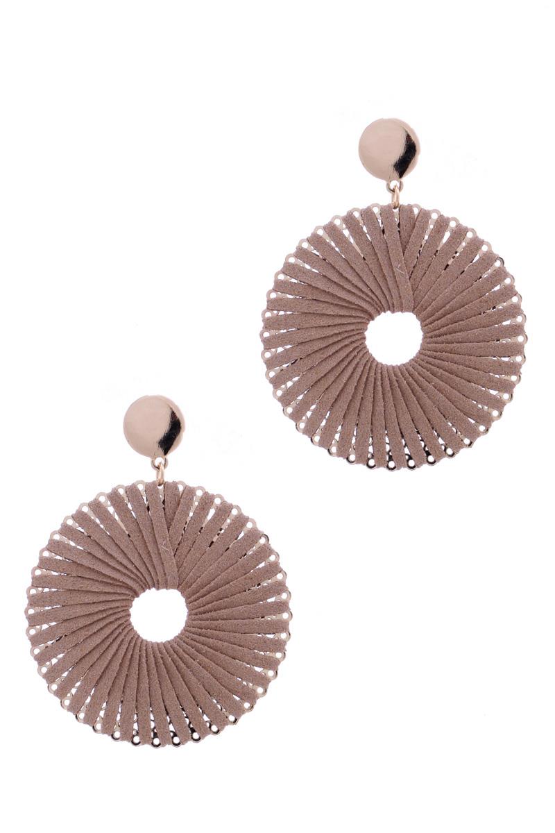 RAFFIA EDGE BEADED ROUND DANGLE EARRING