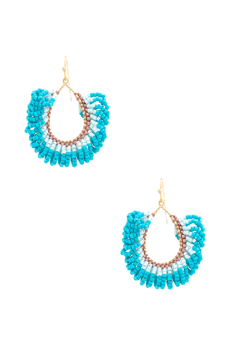 SEED BEAD RAFFIA FAN DANGLE EARRING