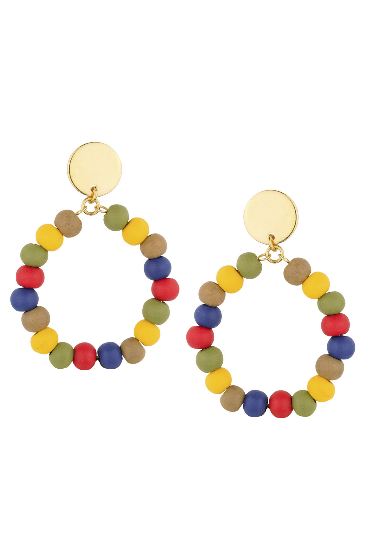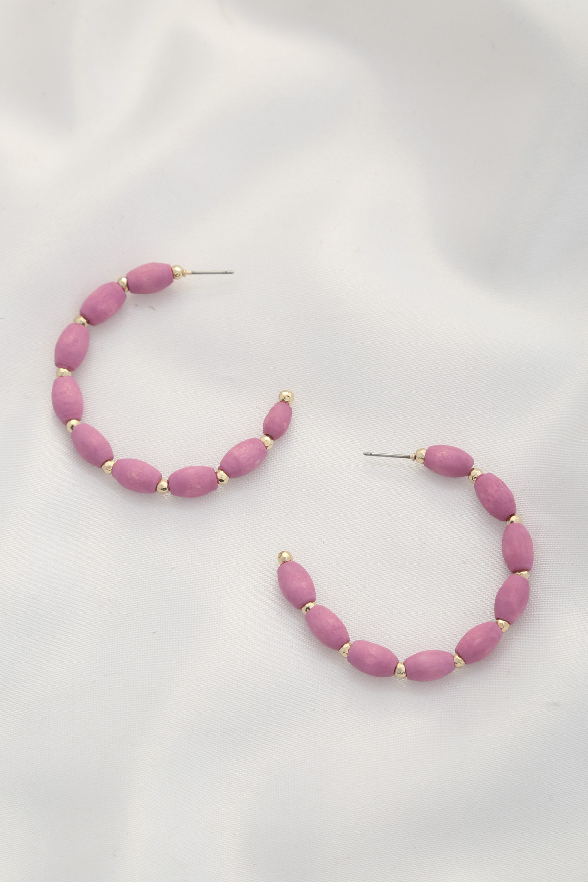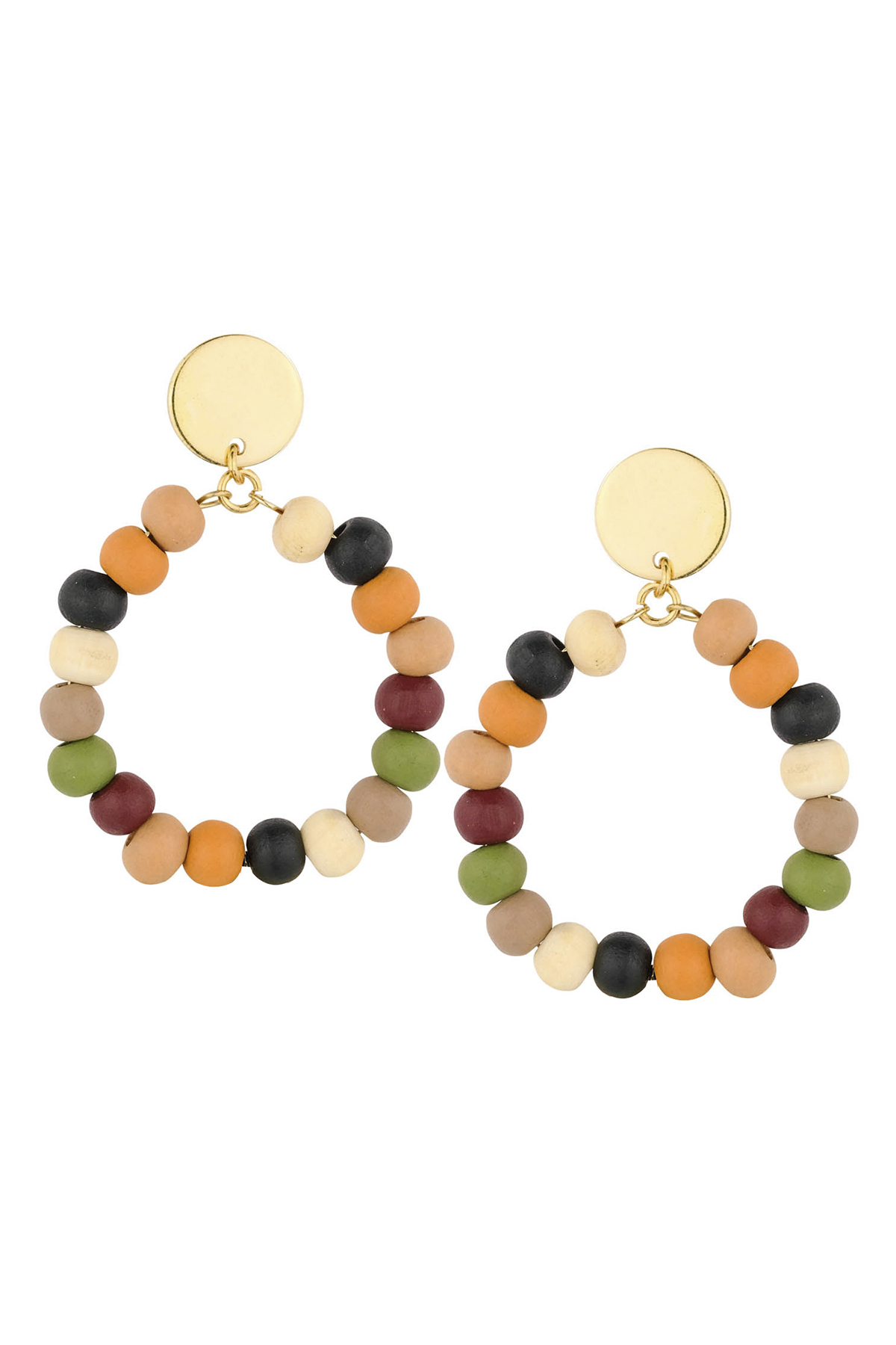 COLOR WOOD BEAD OPEN HOOP EARRING
