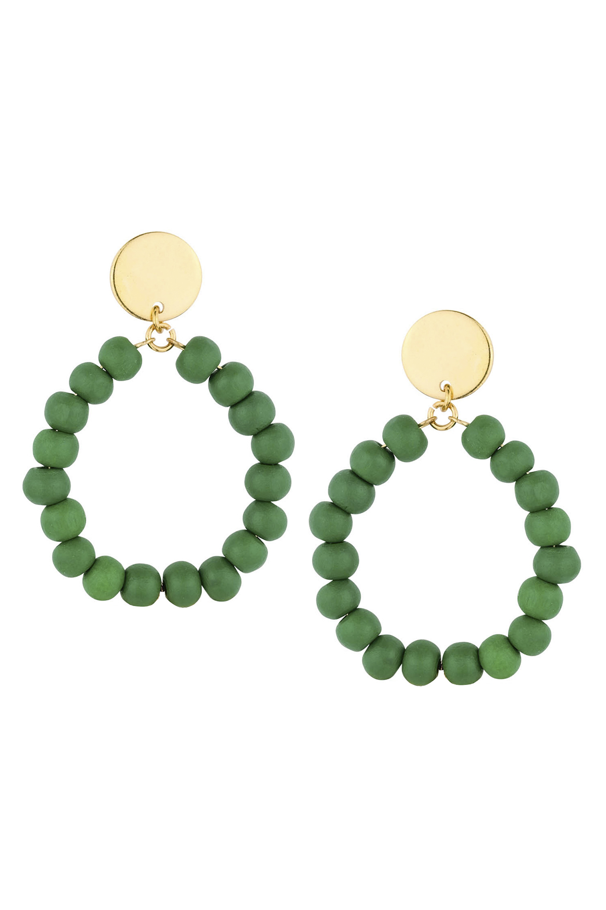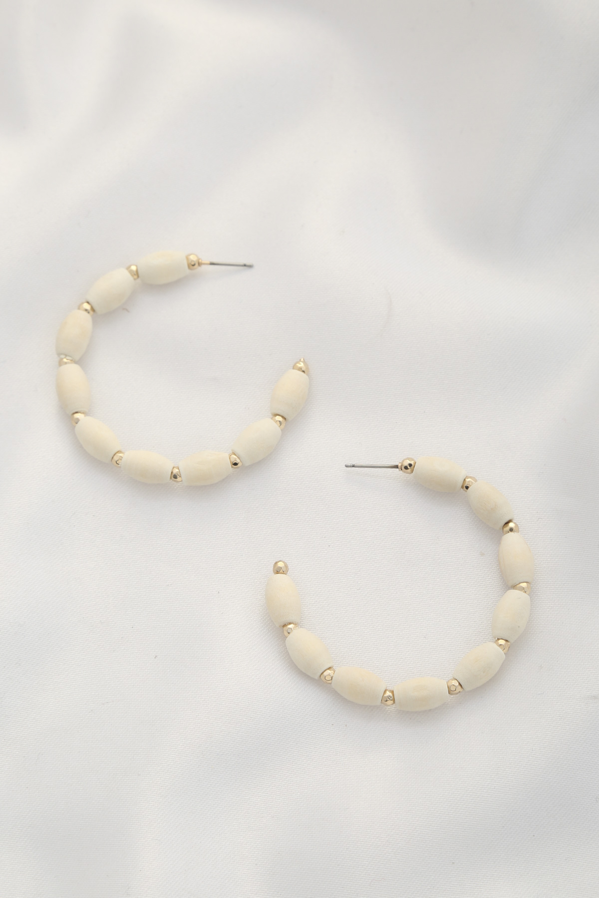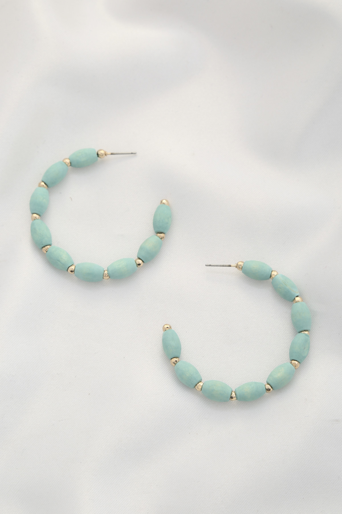 COLOR WOOD BEAD OPEN HOOP EARRING
