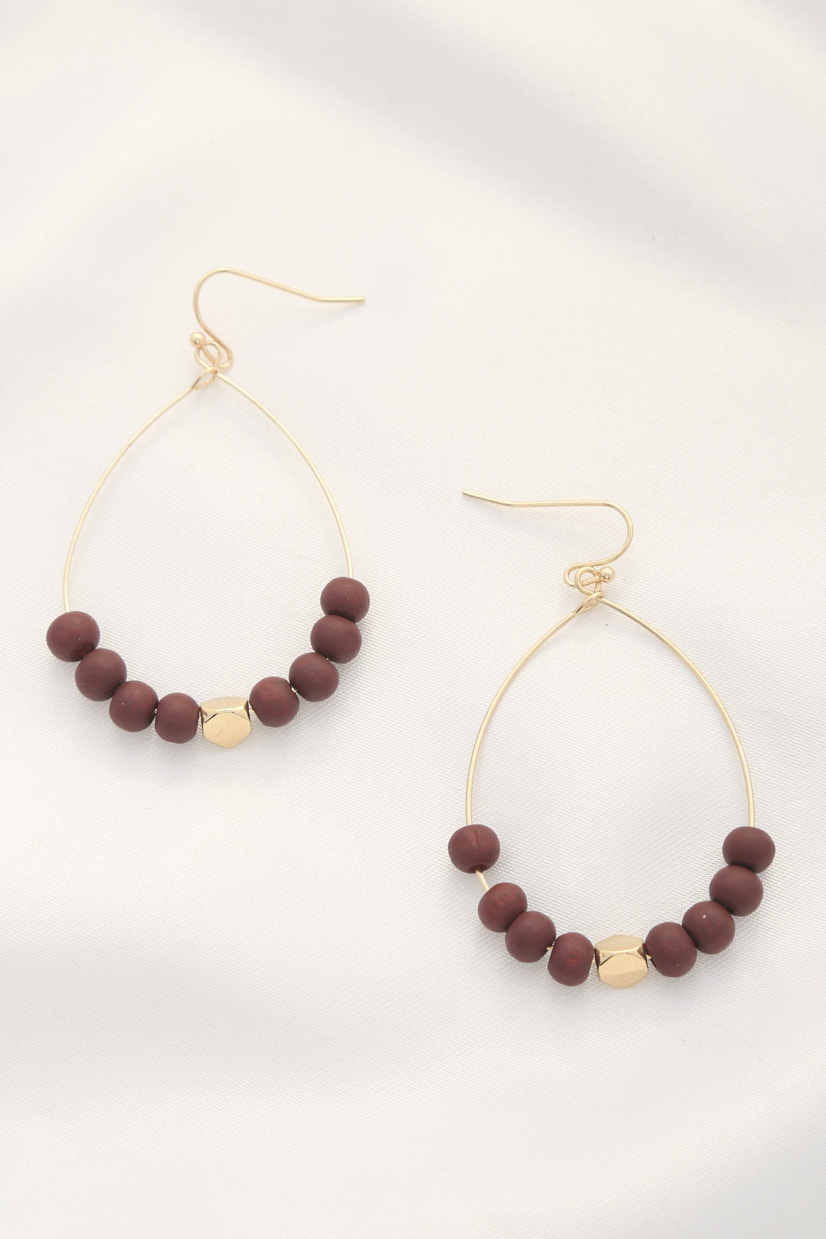 WOOD BEAD TEARDROP DANGLE EARRING
