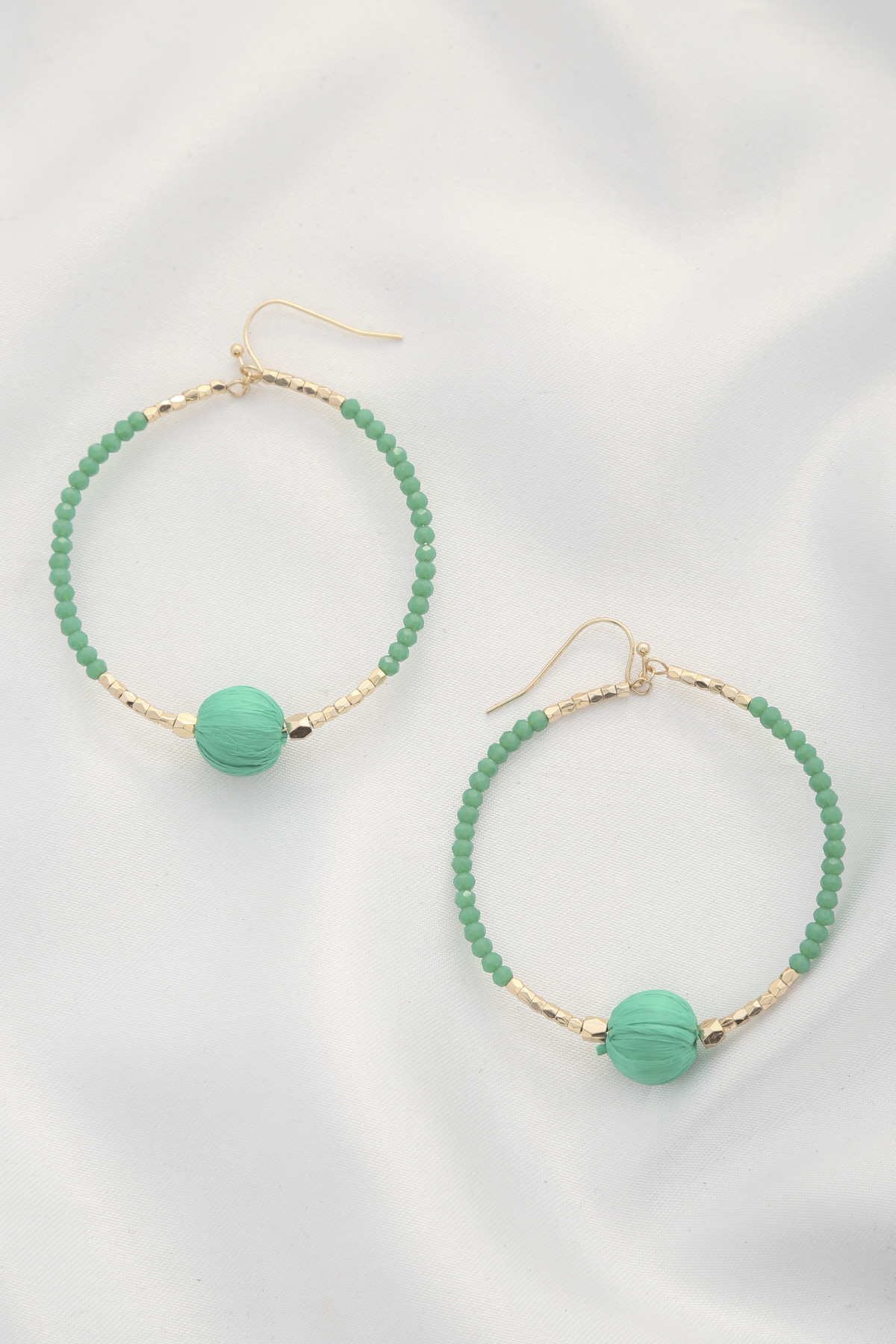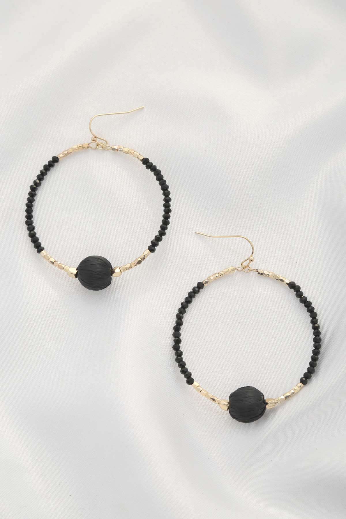 RAFFIA ROUND BEAD DANGLE EARRING