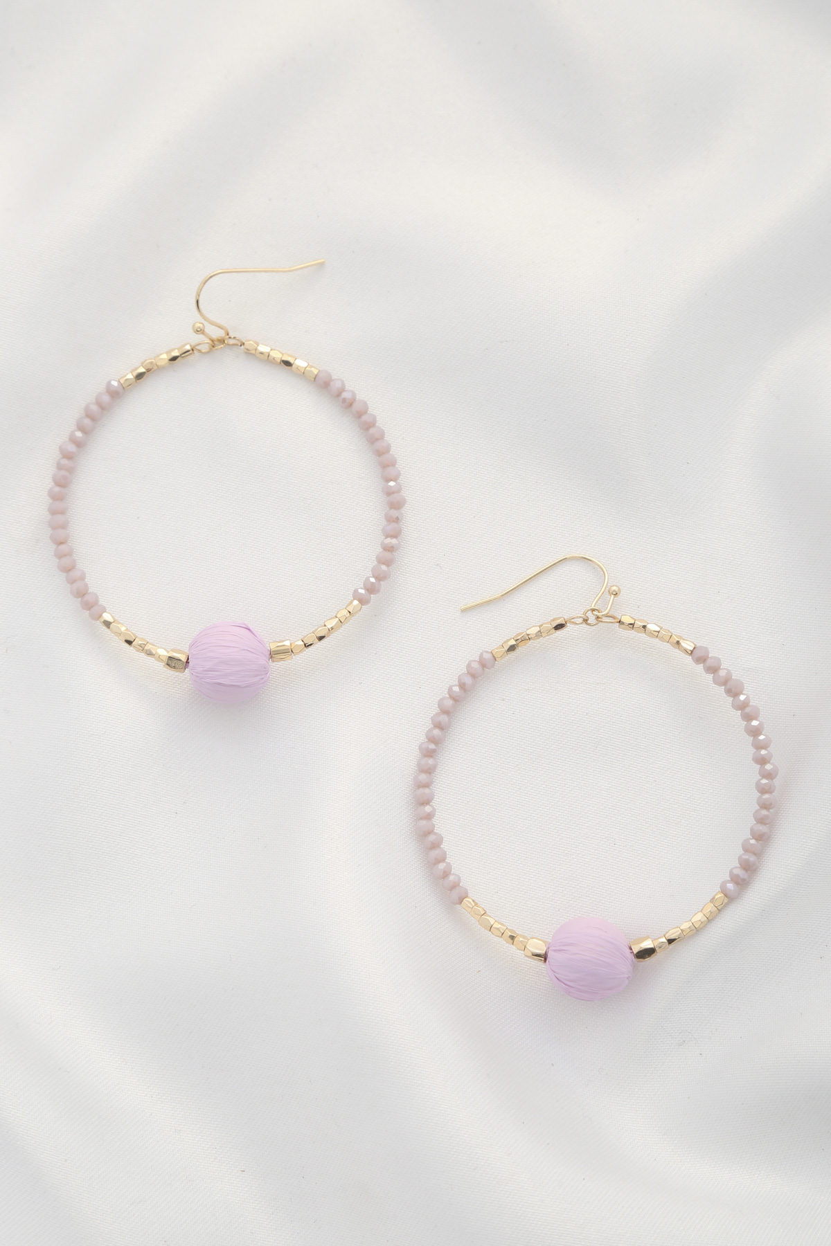 OPEN CIRCLE BEADED THREAD WRAPPED EARRING