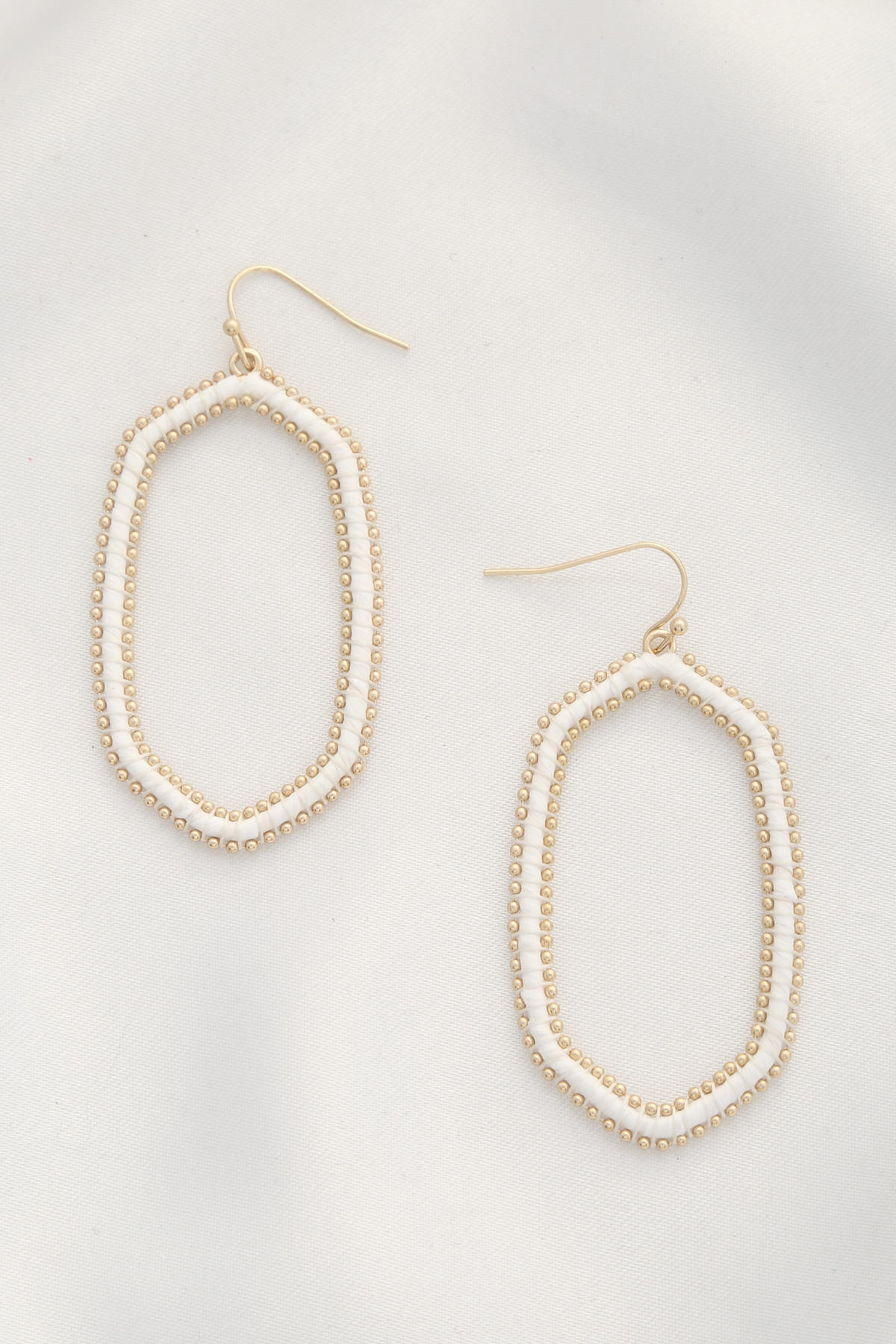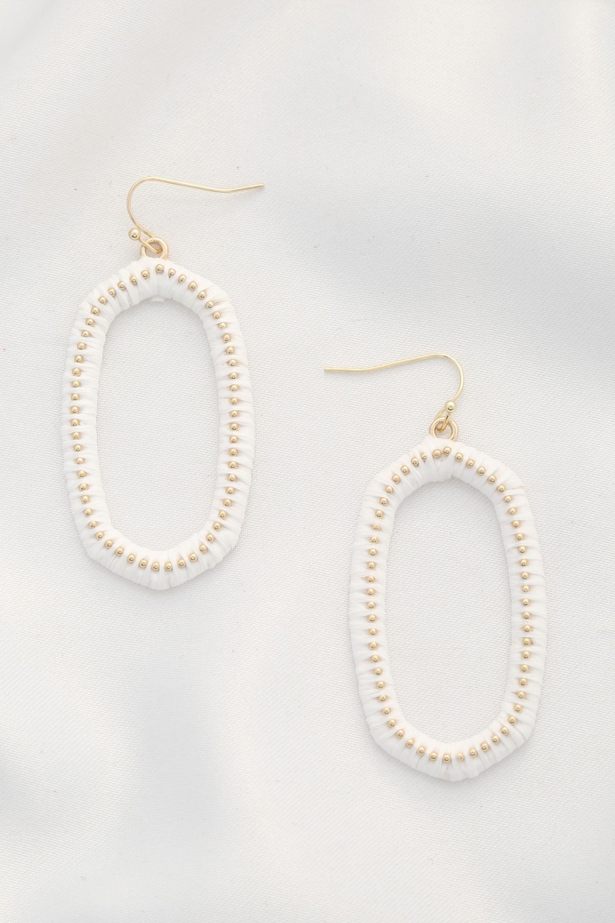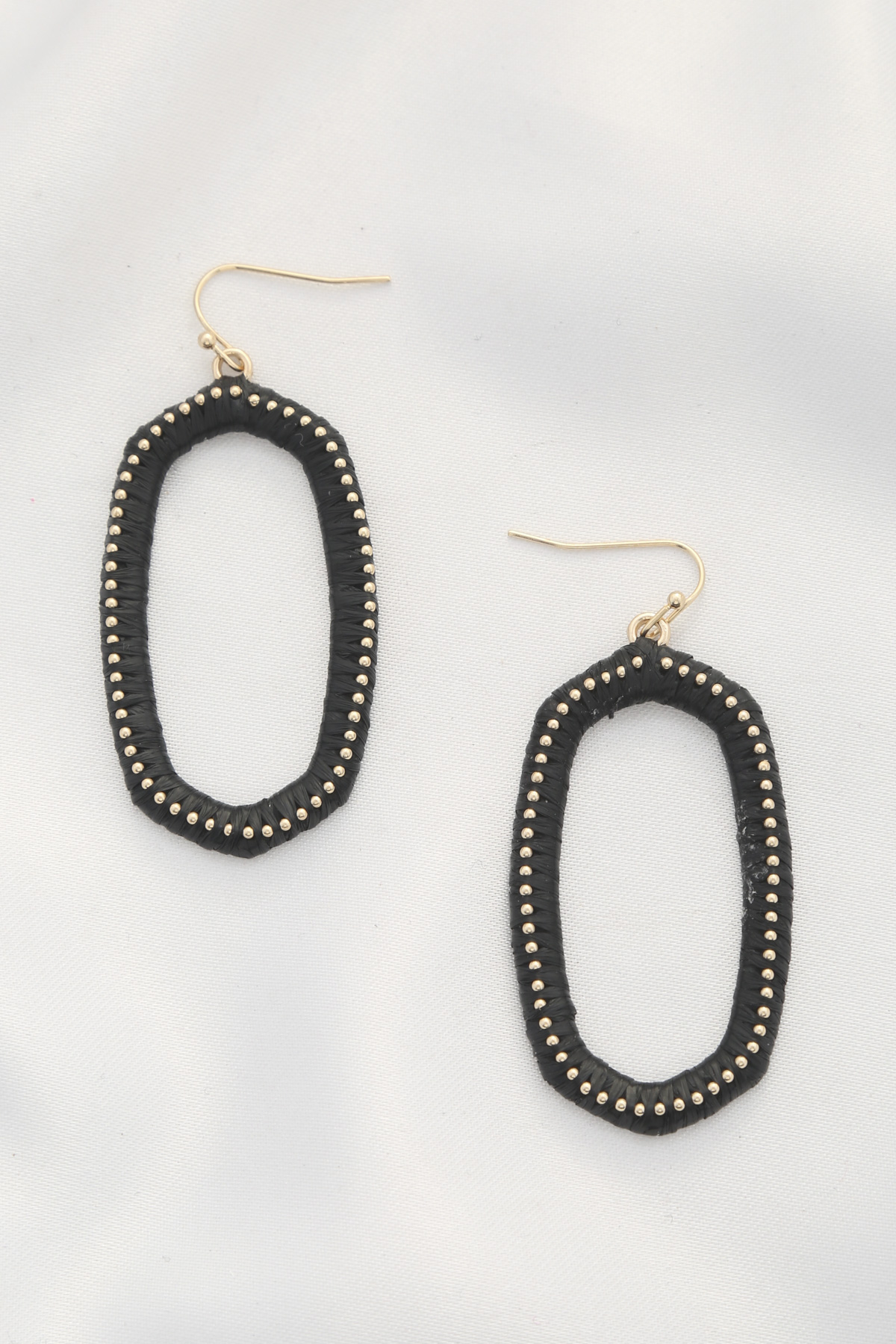 RAFFIA WOVEN POINTED OVAL DANGLE EARRING