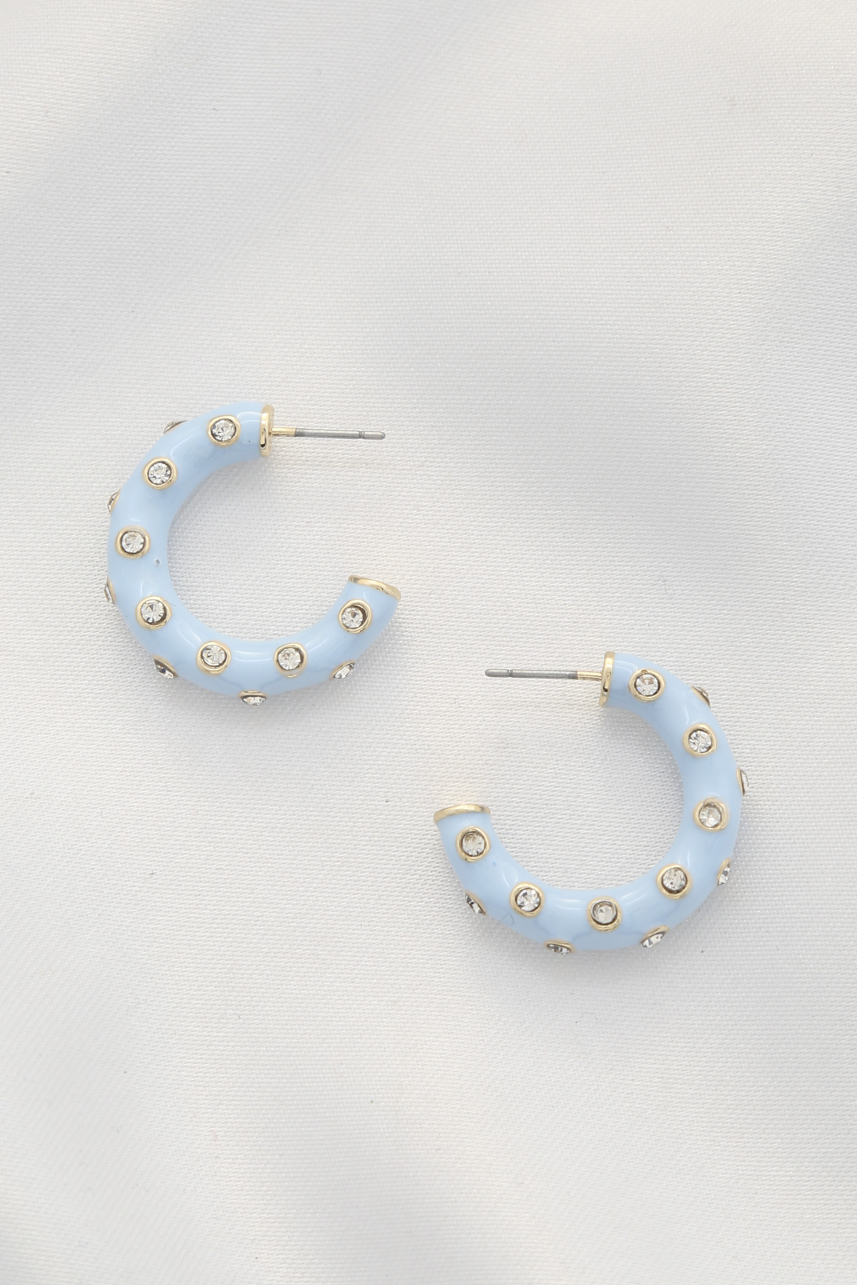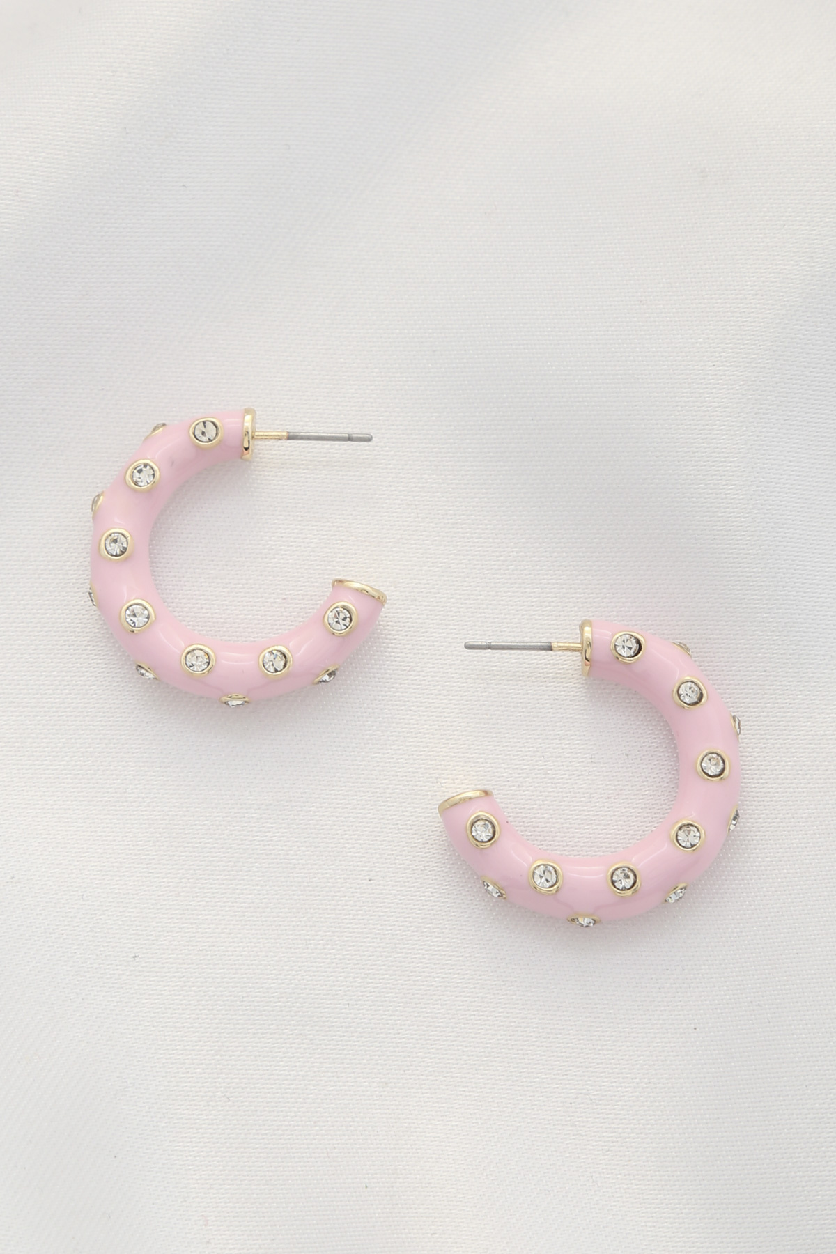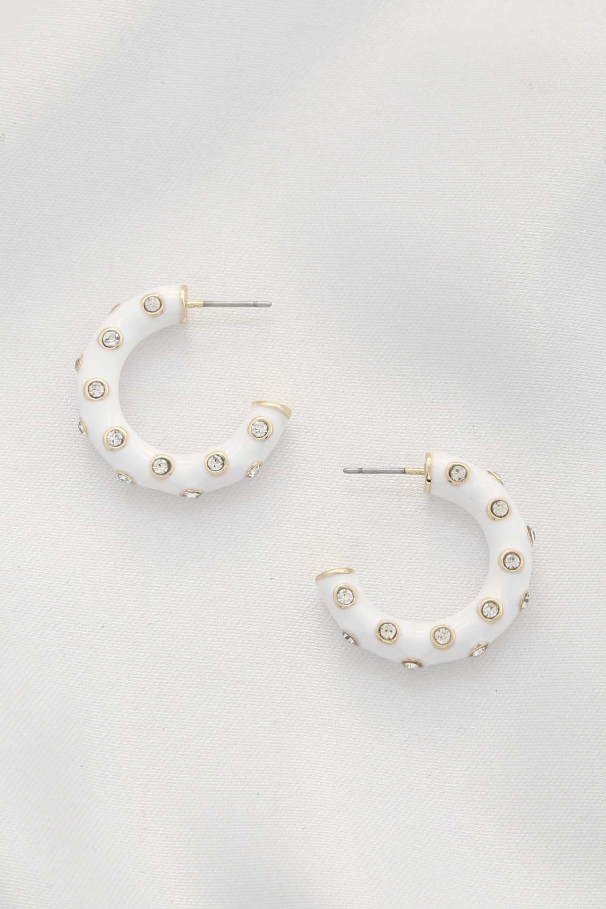 COLOR METAL RHINESTONE OPEN CIRCLE EARRING