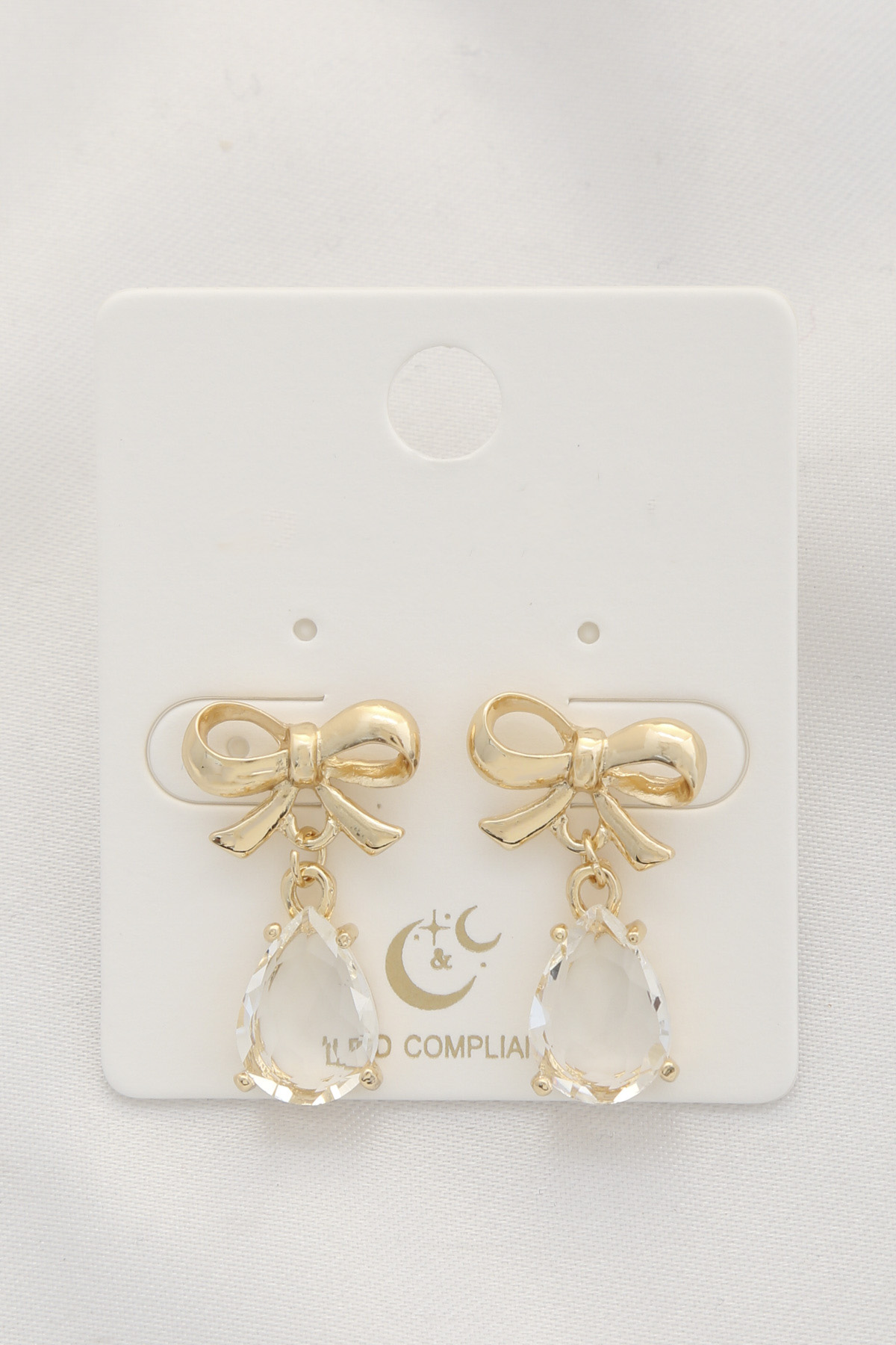 CRYSTAL TEARDROP BOW DANGLE EARRING