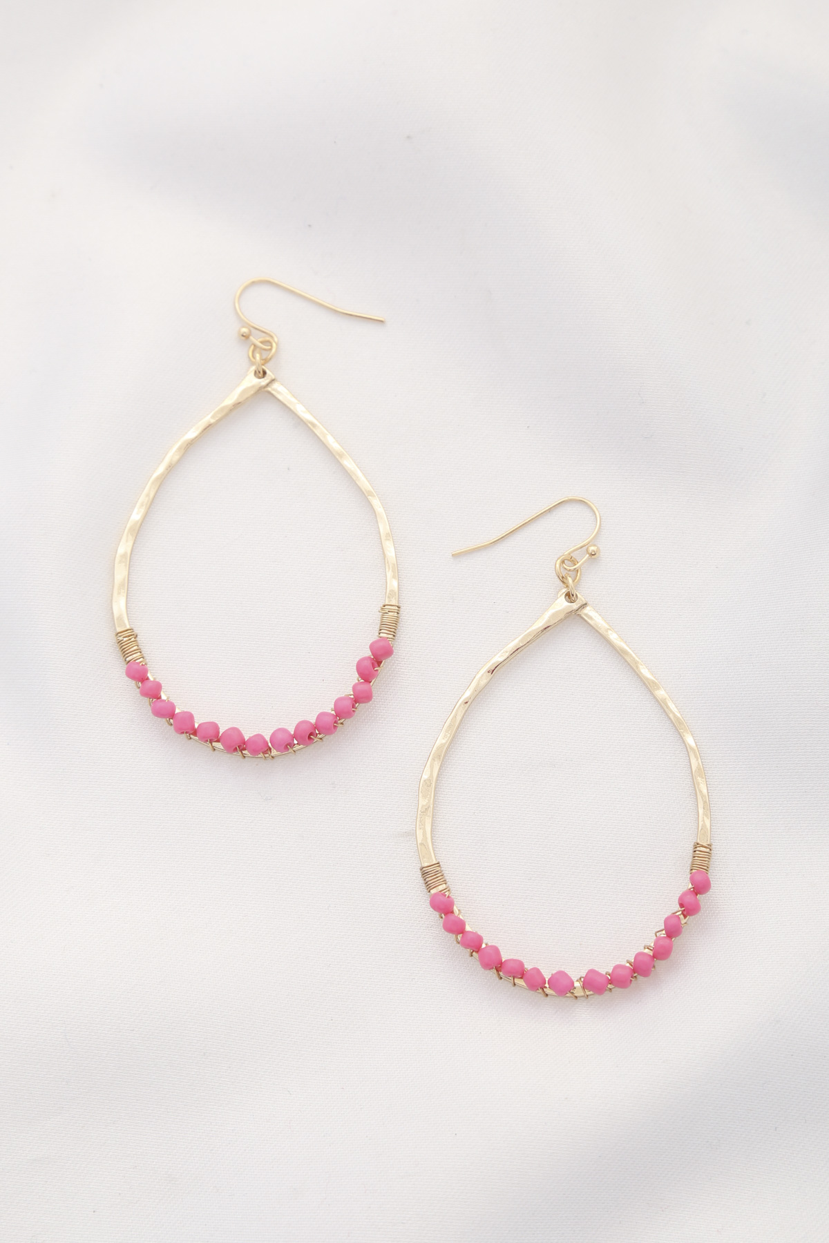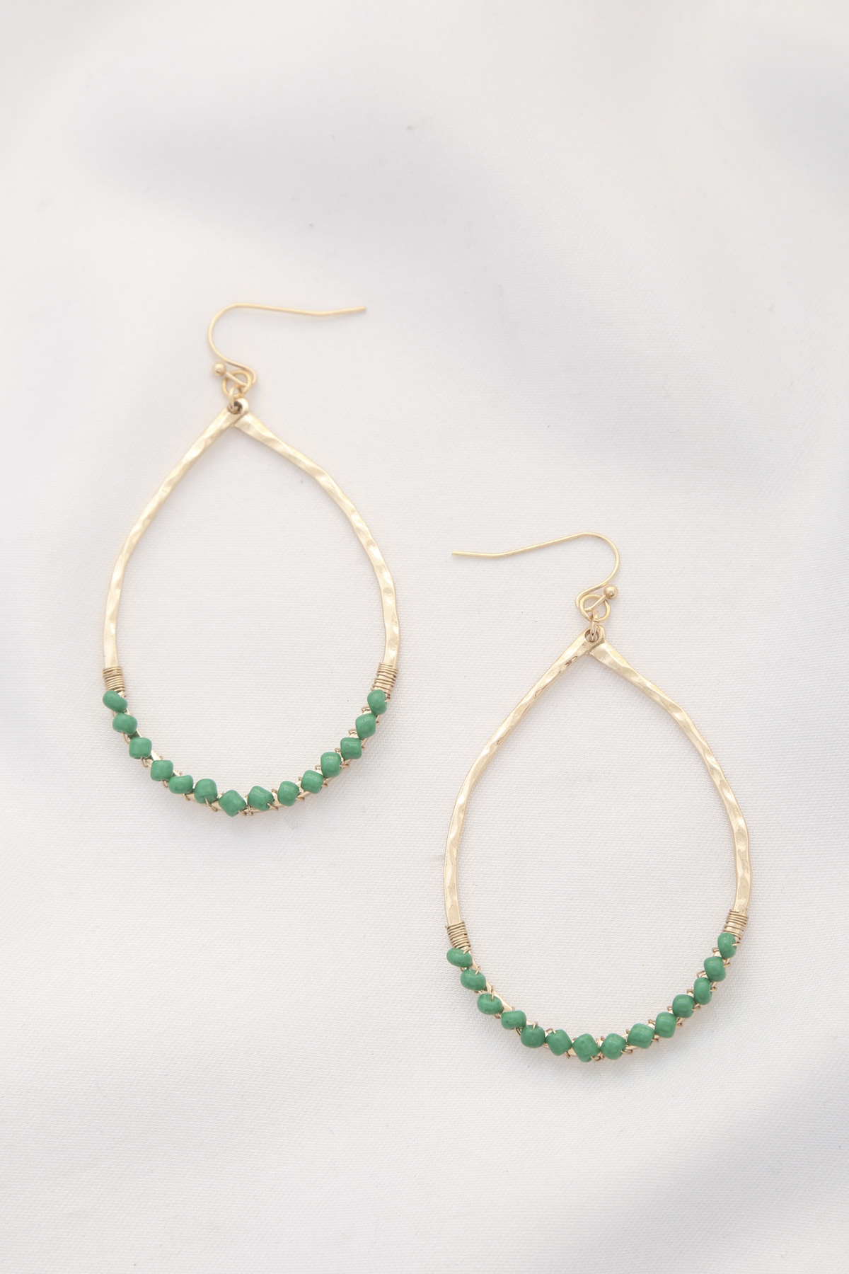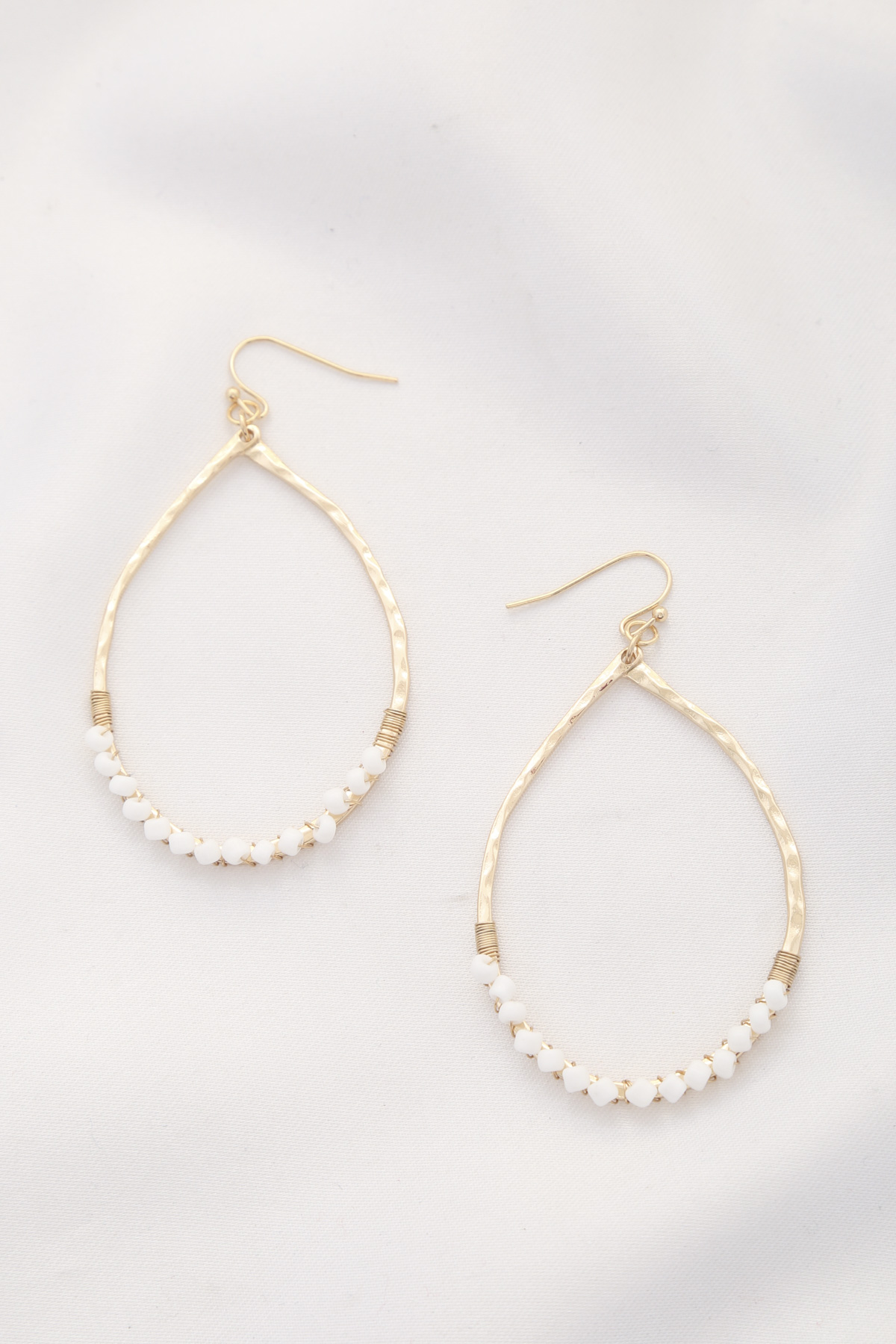 HAMMERED METAL TEARDROP BEADED DANGLE EARRING