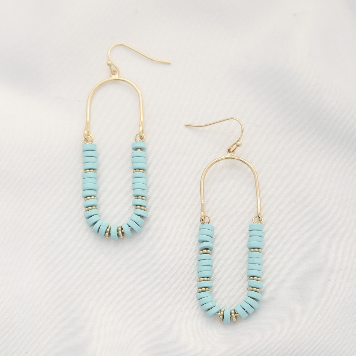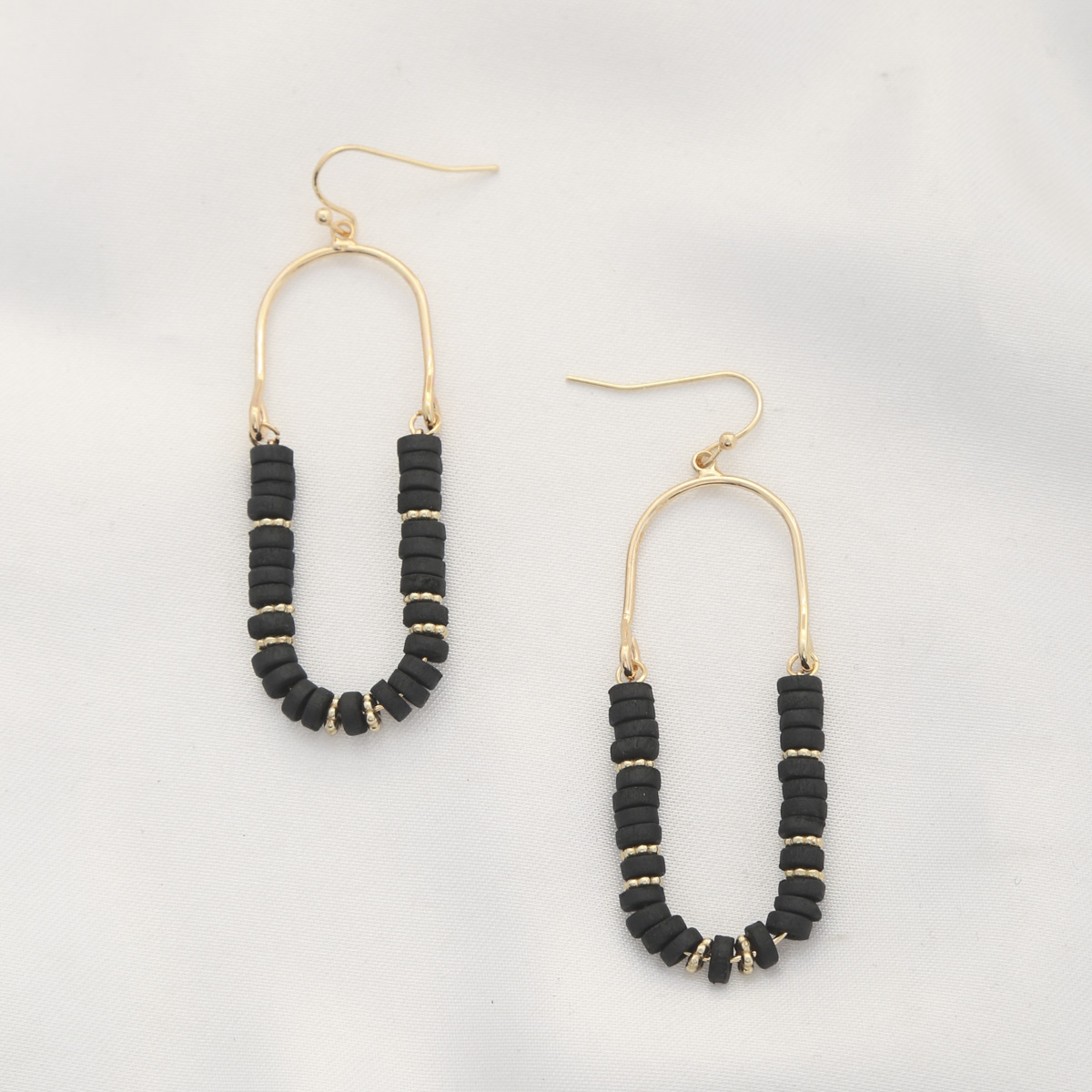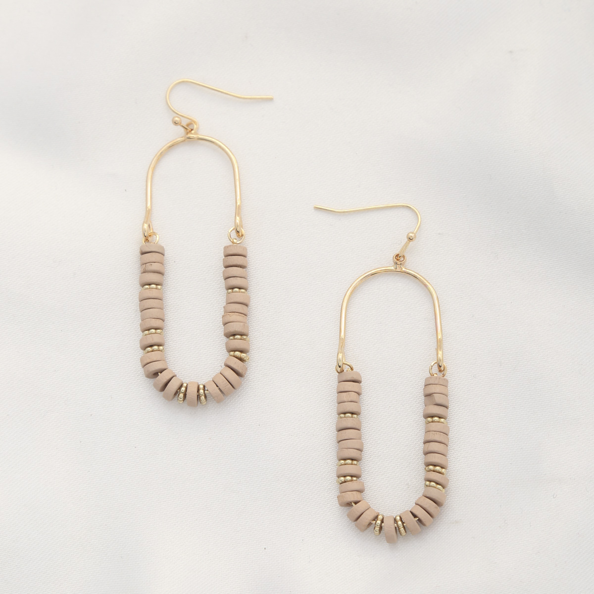 WOOD DISC BEAD OVAL DANGLE EARRING