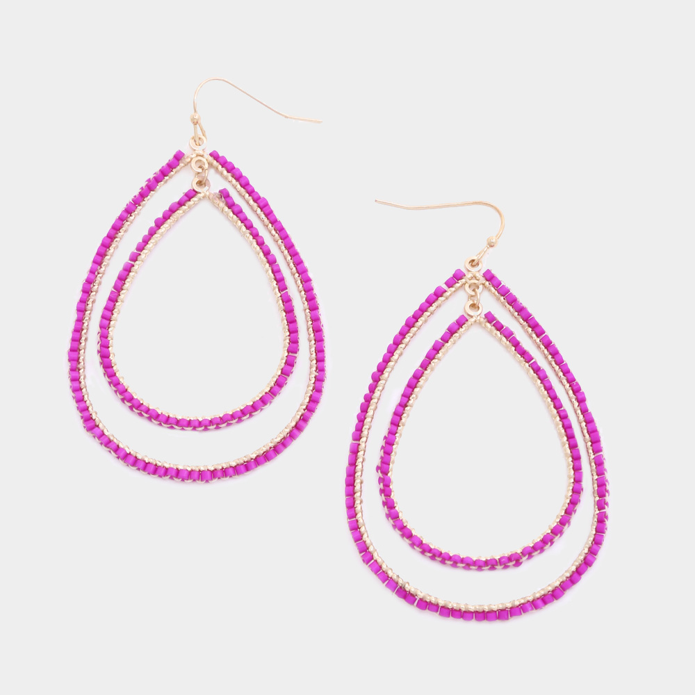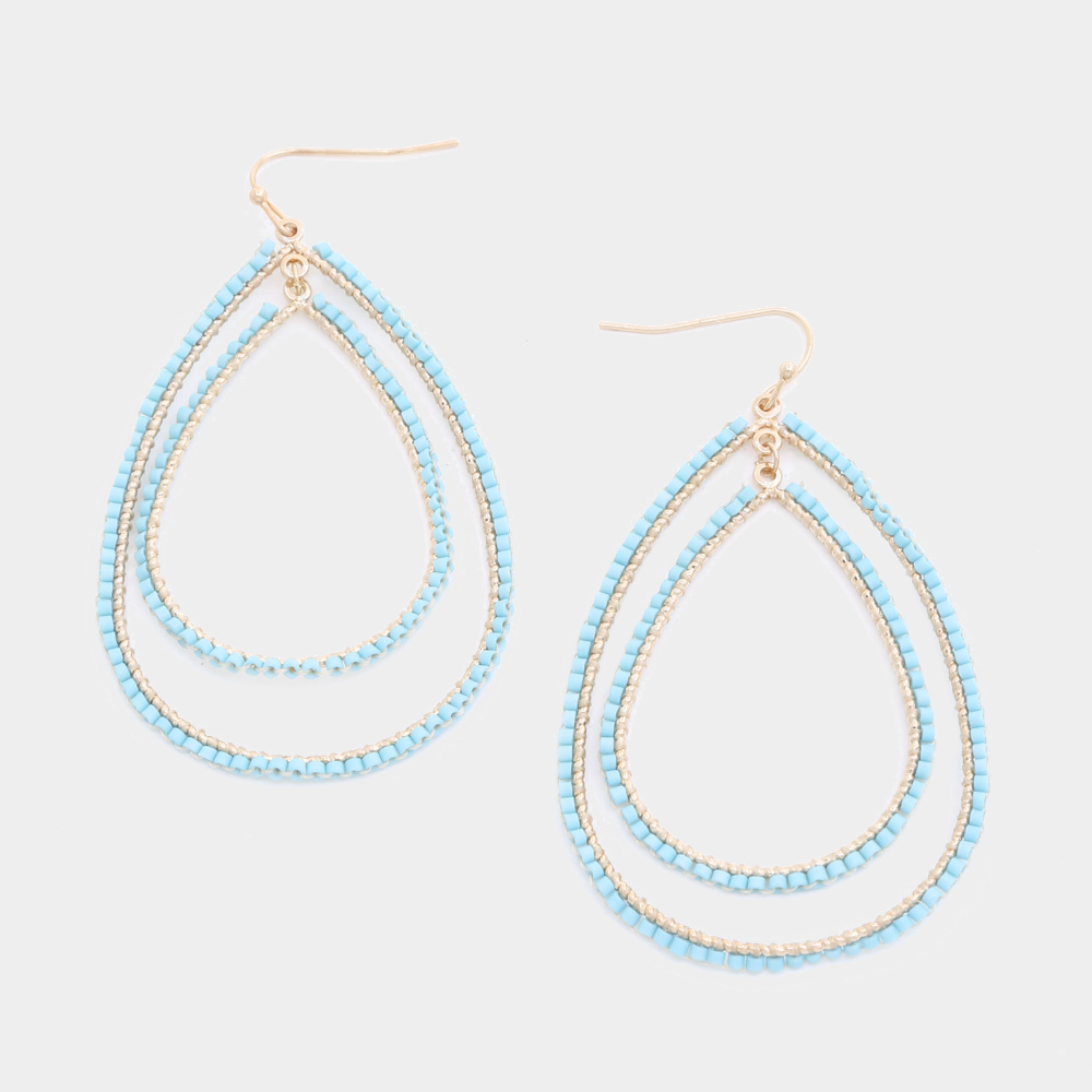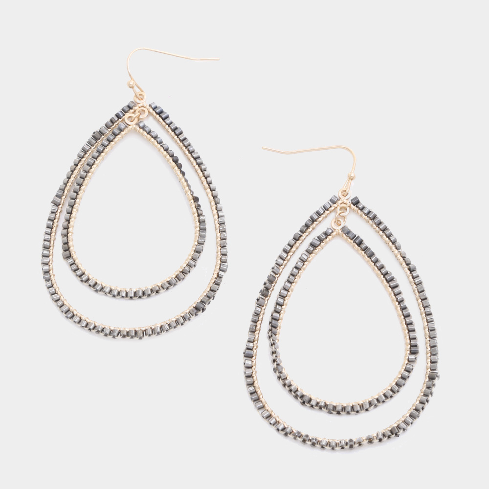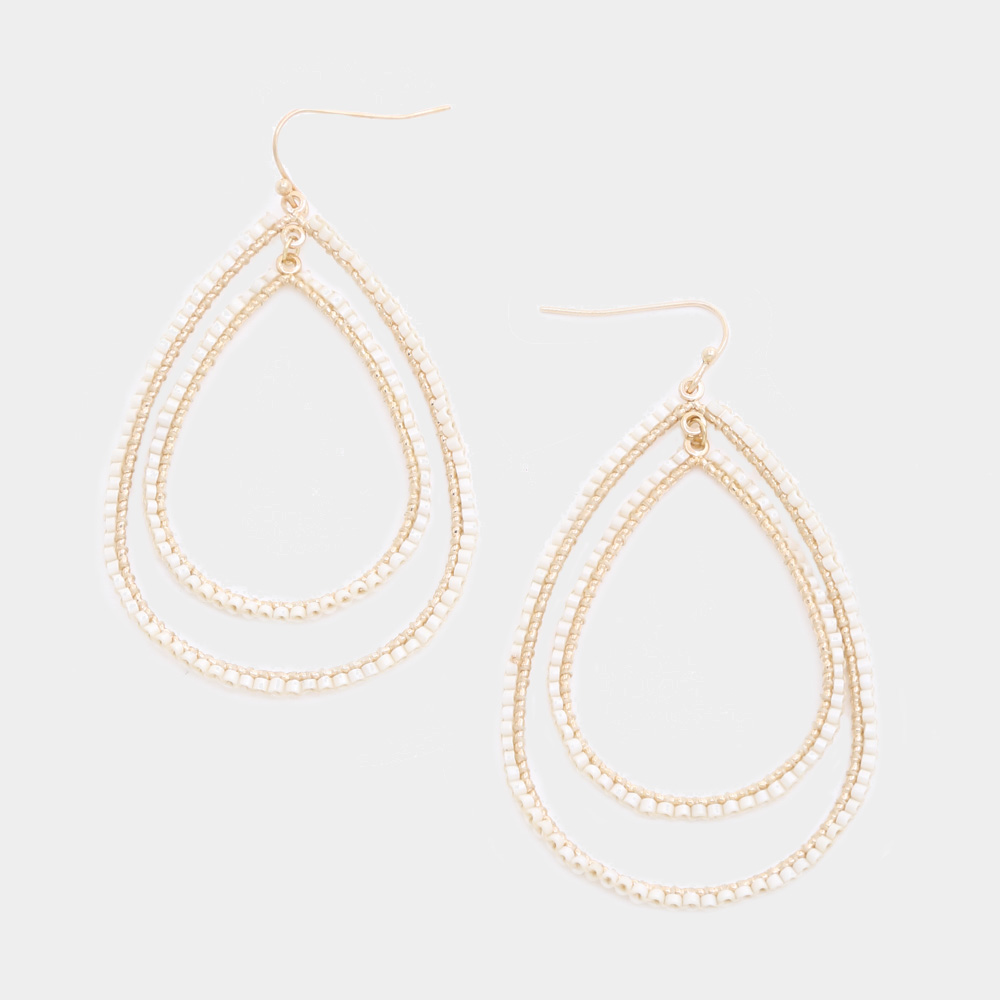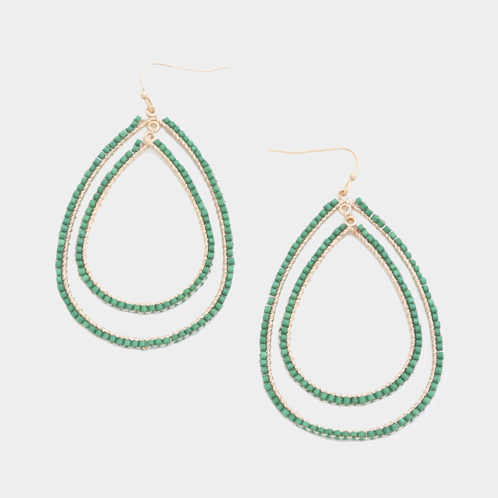 BEADED DOUBLE TEARDROP DANGLE EARRING