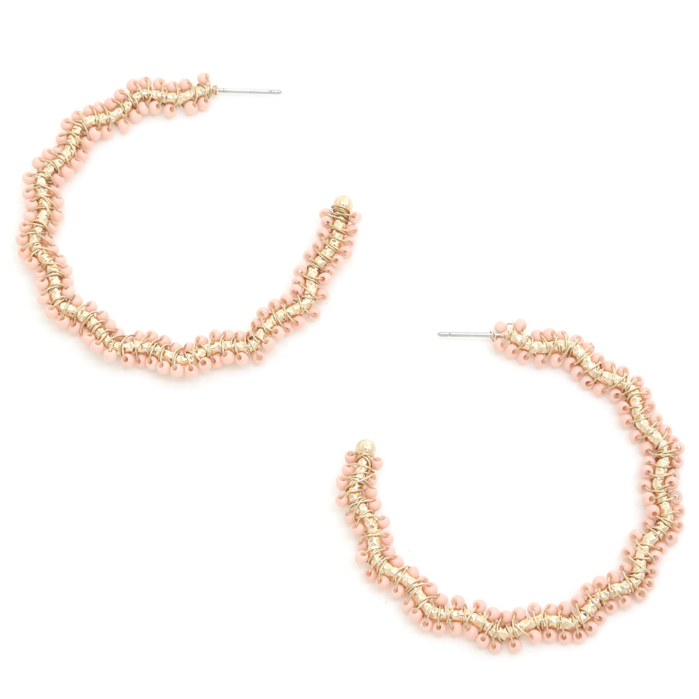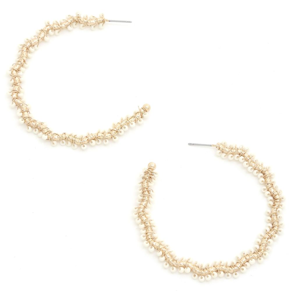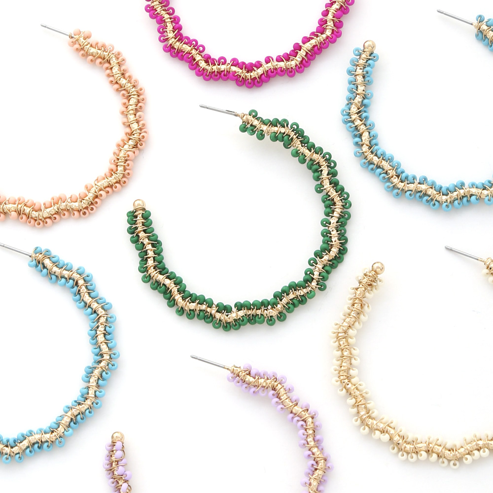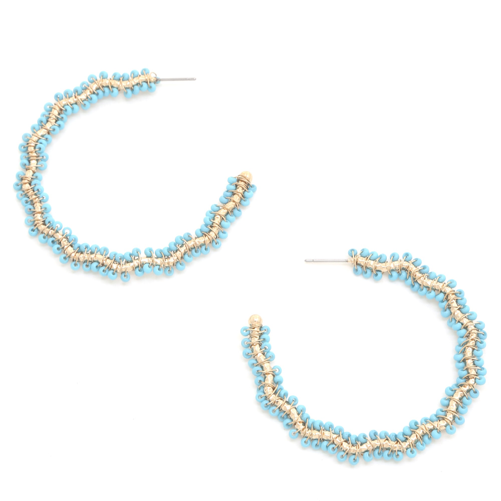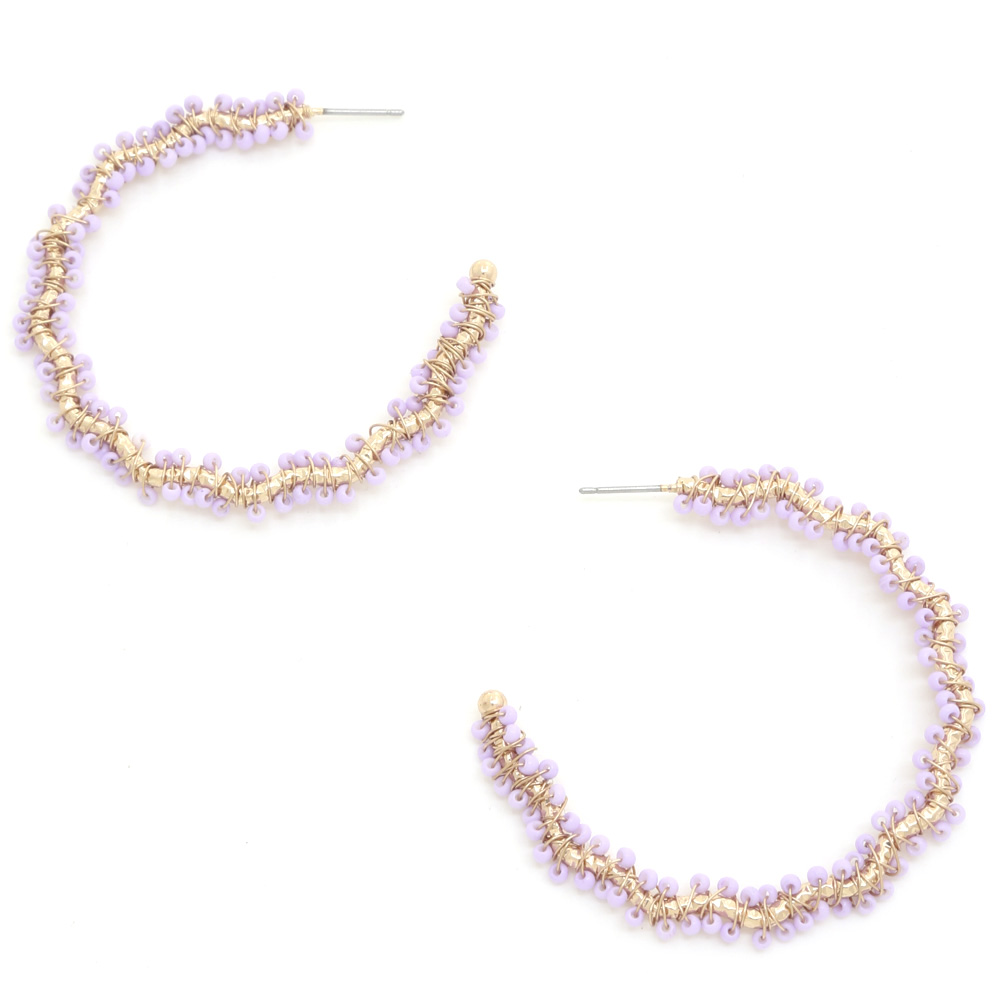 WAVY SEEED BEAD METAL OPEN HOOP EARRING