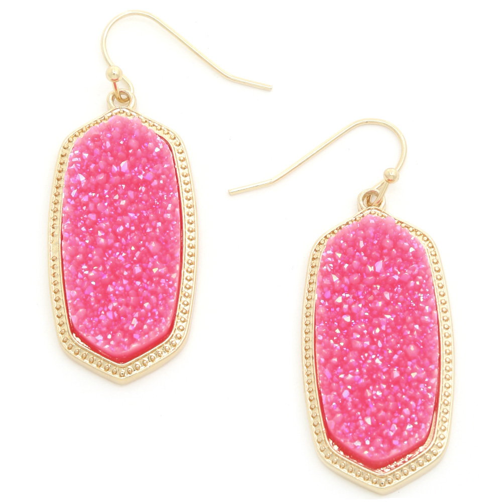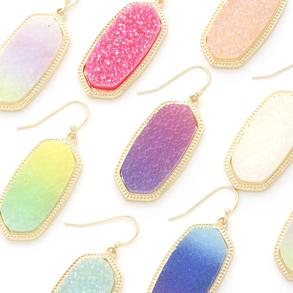 TWO TONE DRUZY STONE DANGLE EARRING