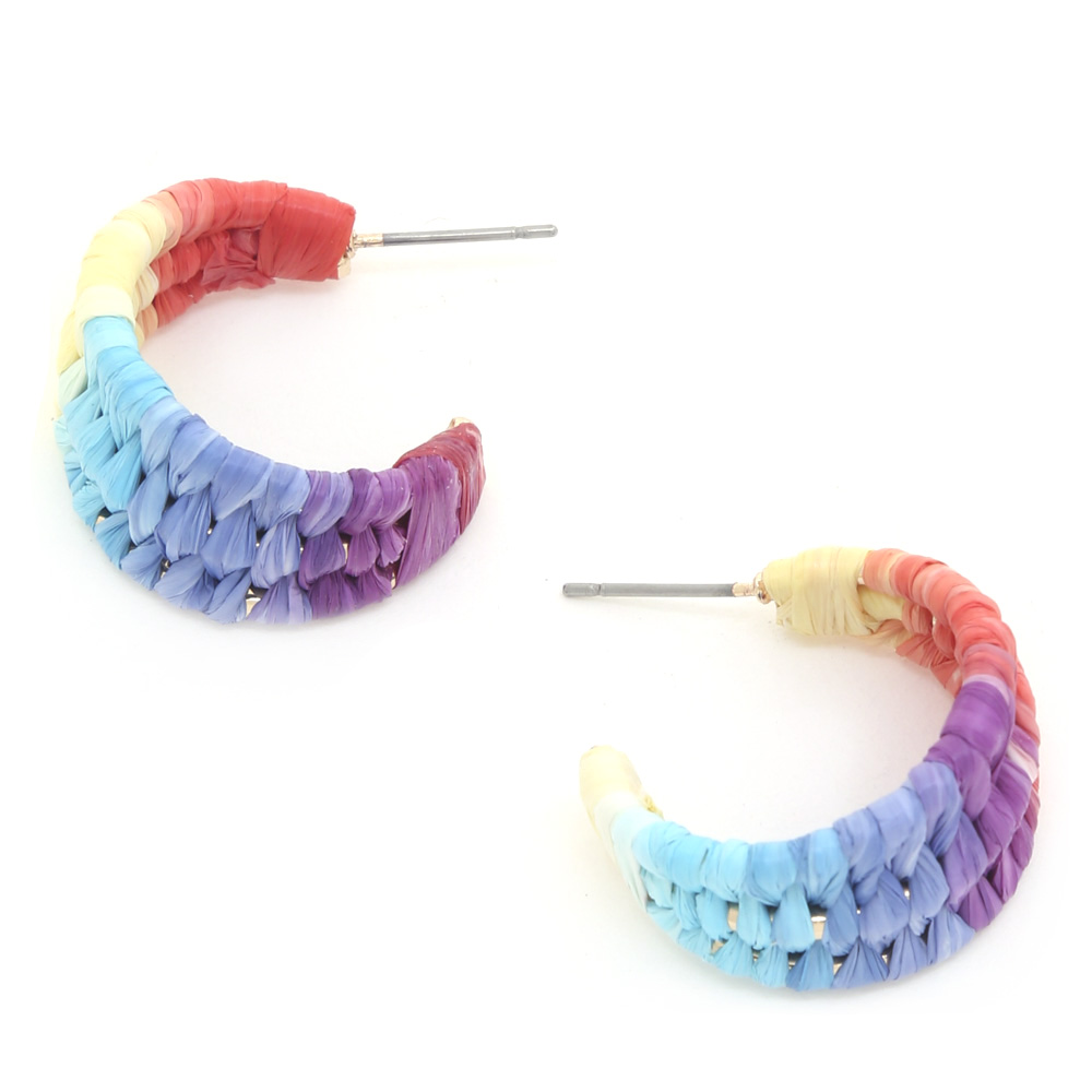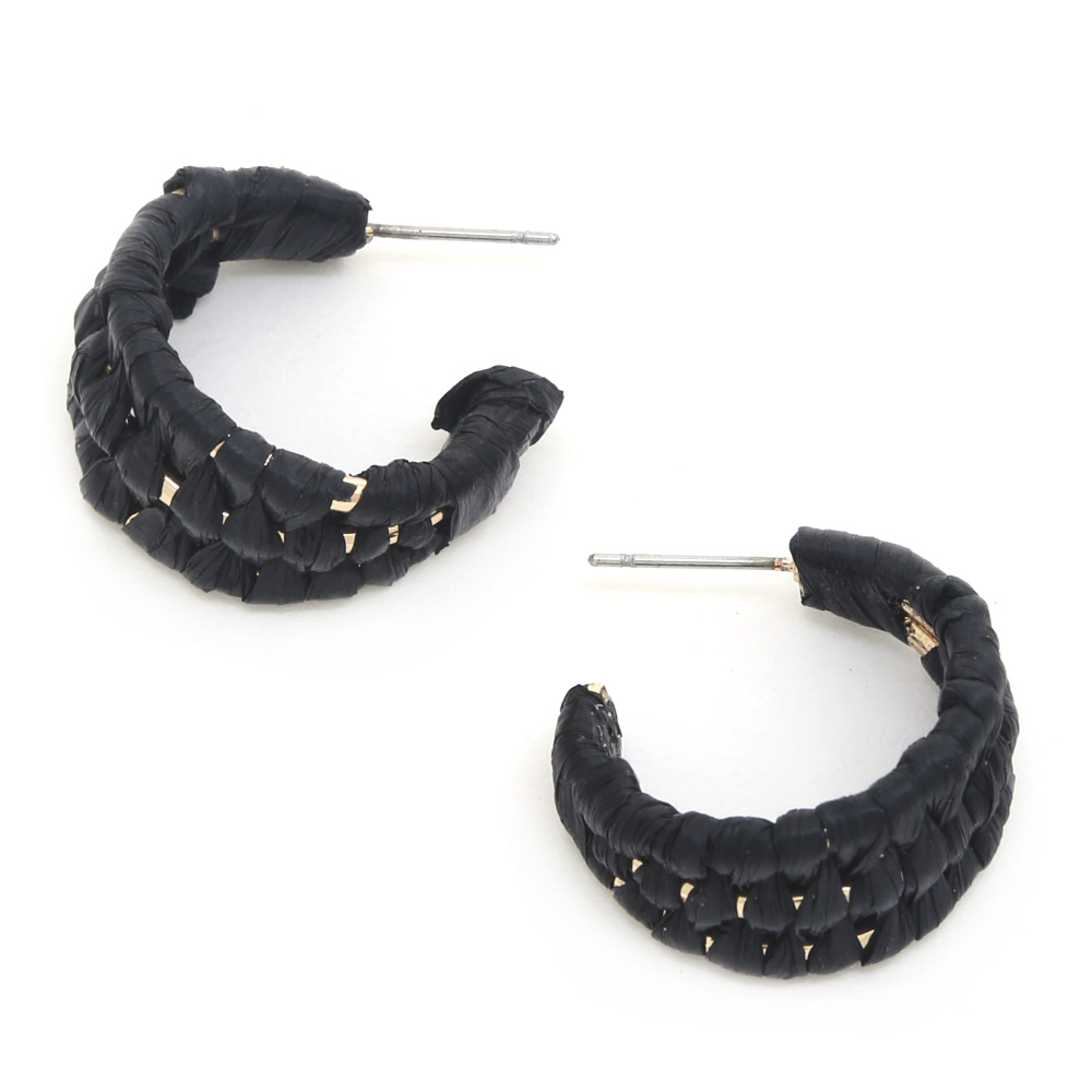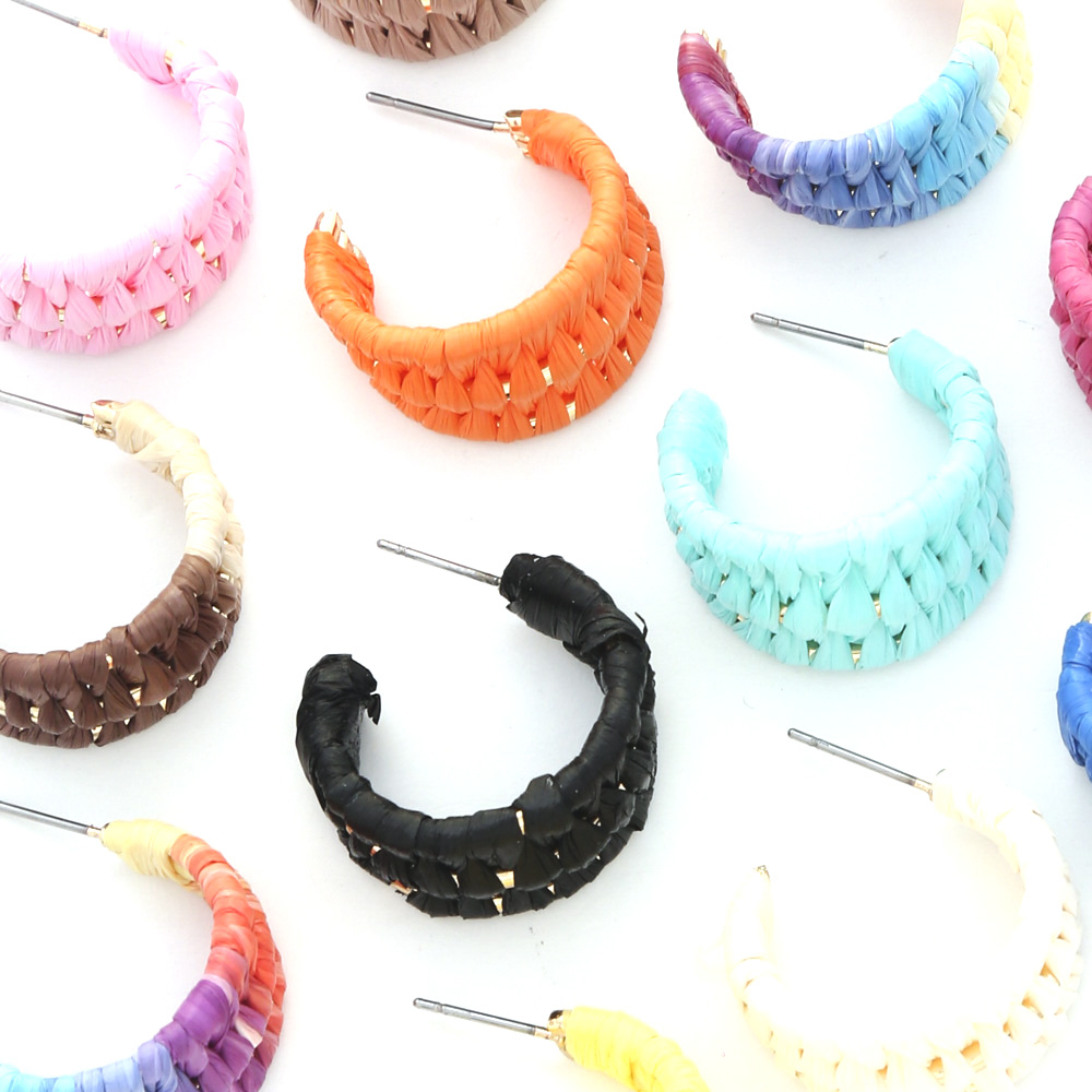 WOVEN RAFFIA OPEN HOOP EARRING