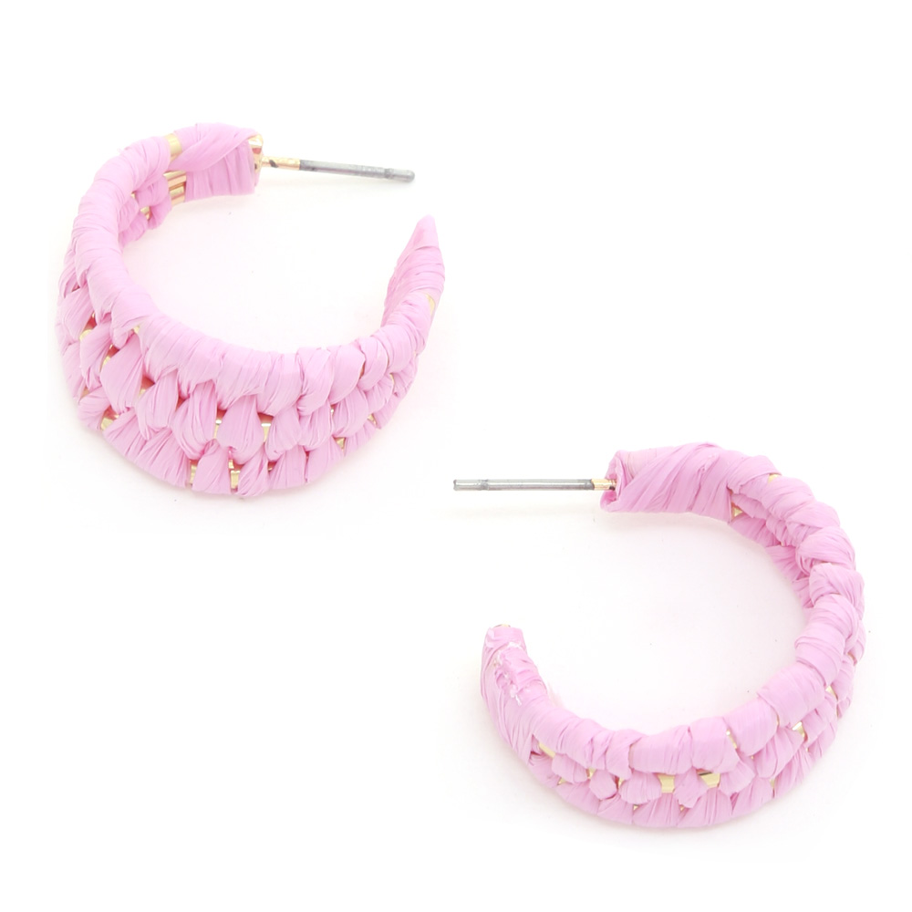 RAFFIA BRIADED OPEN HOOP EARRING