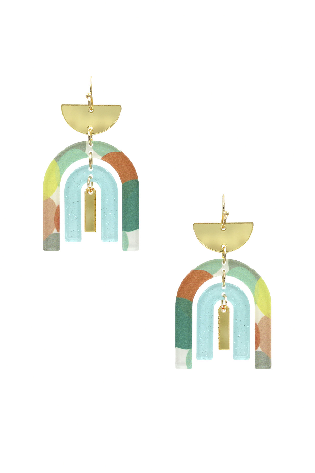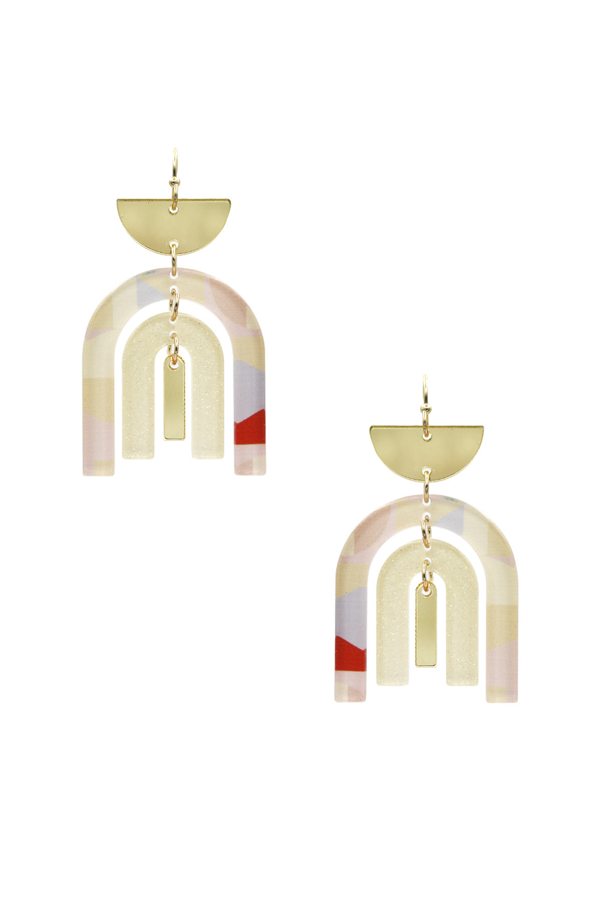 ACETATE METAL METALFLAKE GEOMETRIC FISH HOOK EARRING