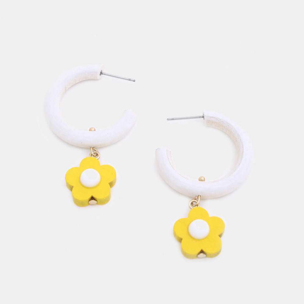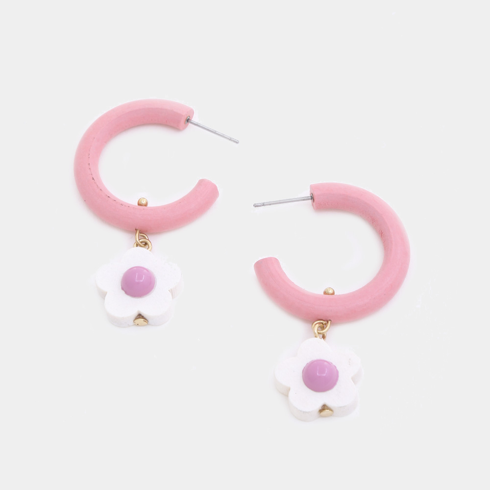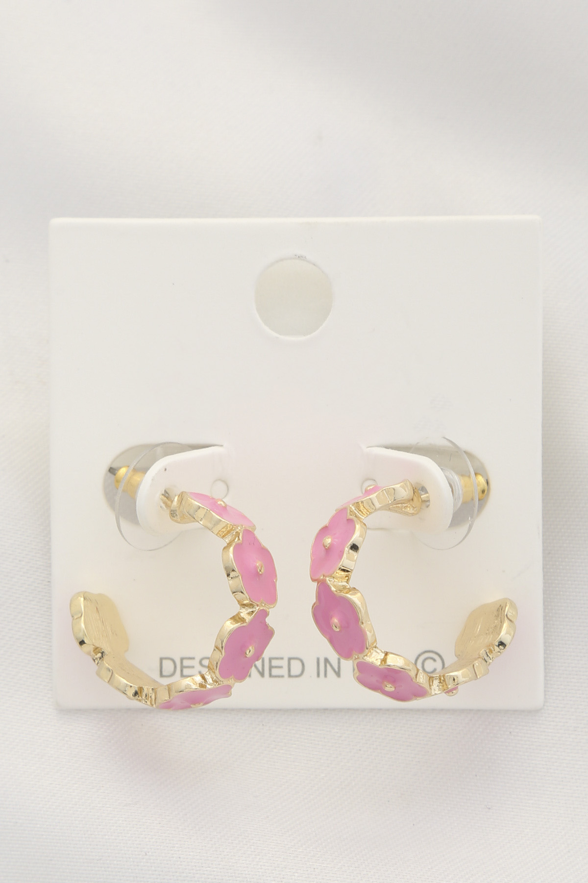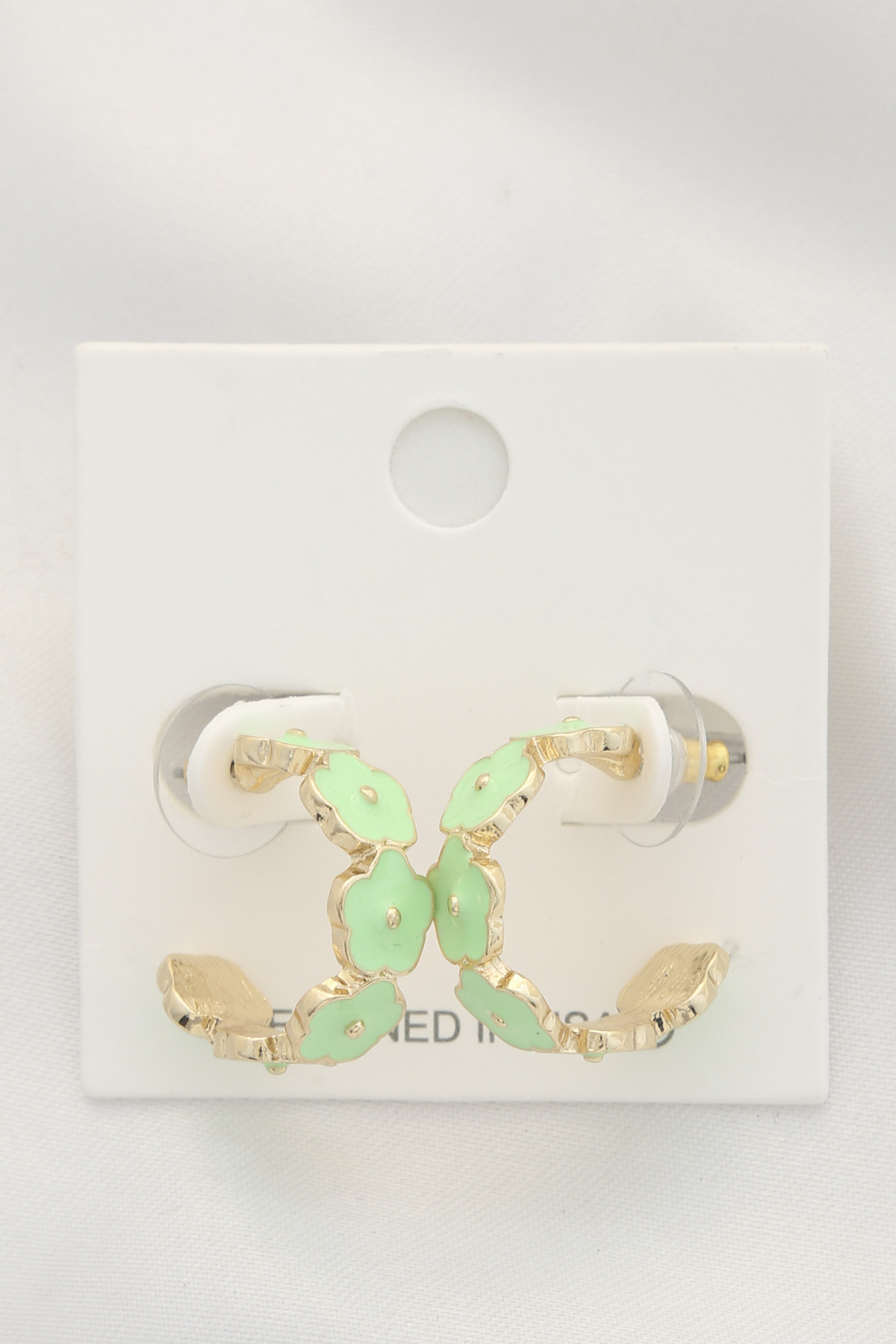 FLOWER PATTERN FLAT OPEN HOOP EARRING