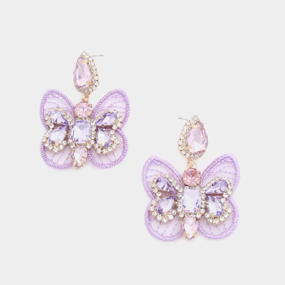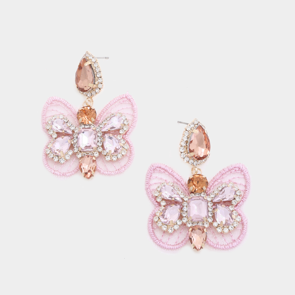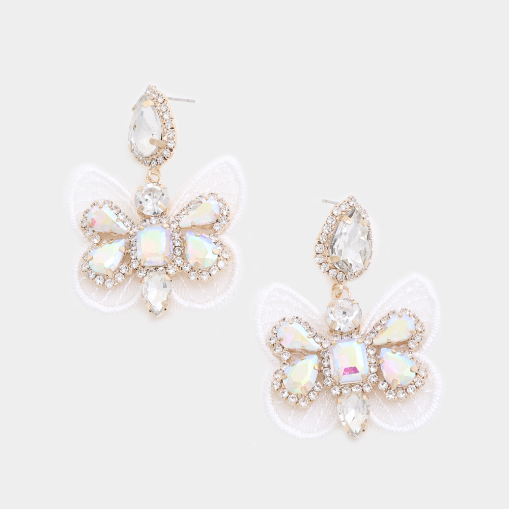 CRYSTAL BUTTERFLY FABRIC DANGLE EARRING