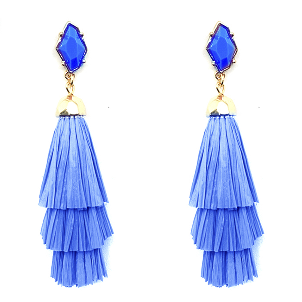THREAD TRIPLE TASSEL DANGLE EARRING