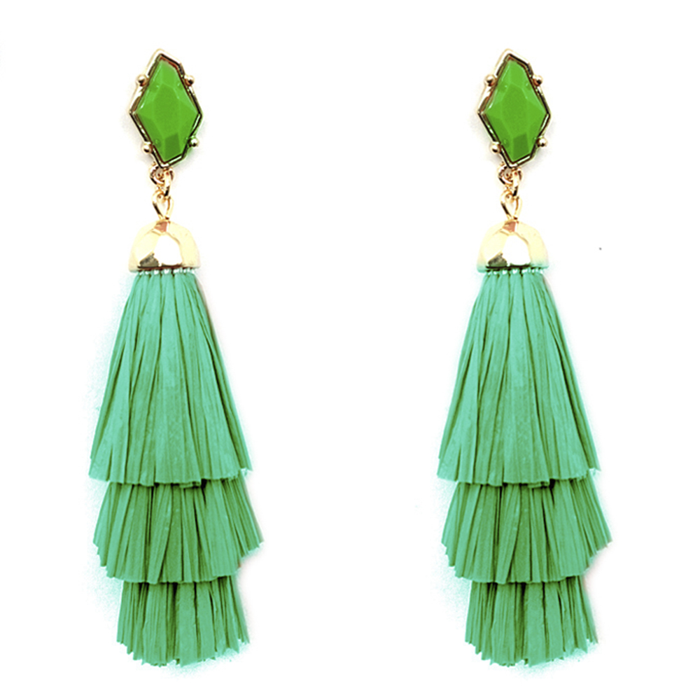 RESIN BEAD & STRAW TASSEL DROP EARRING