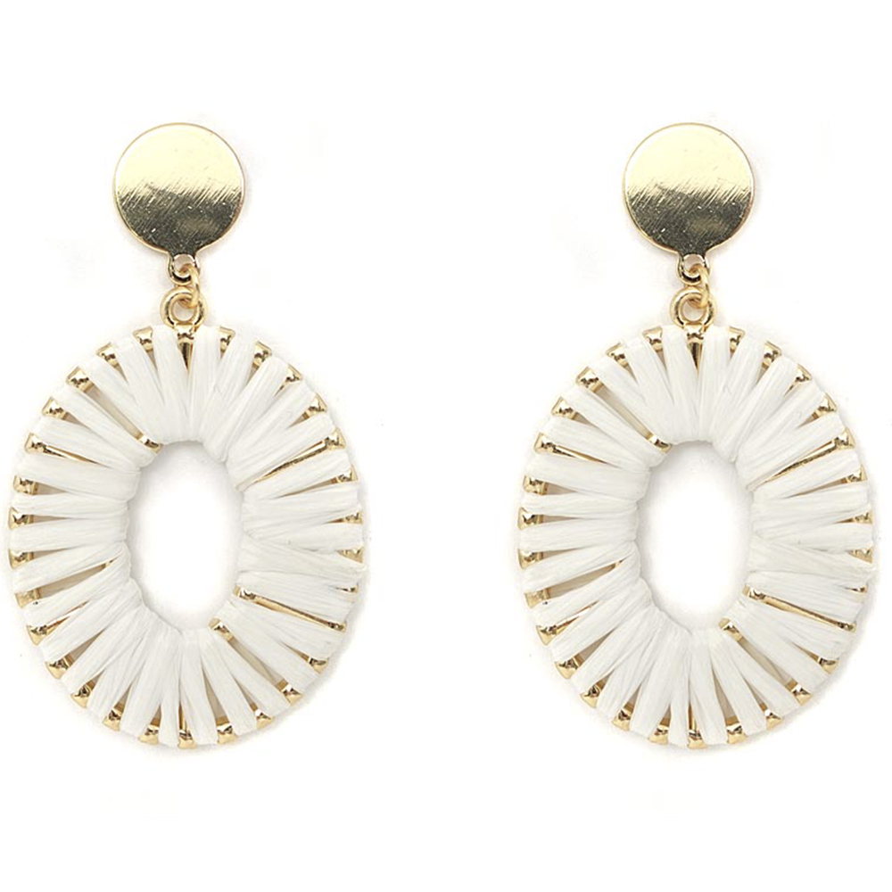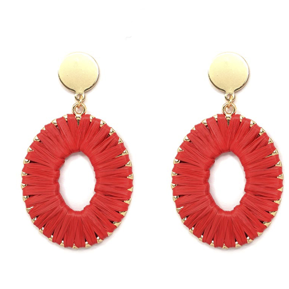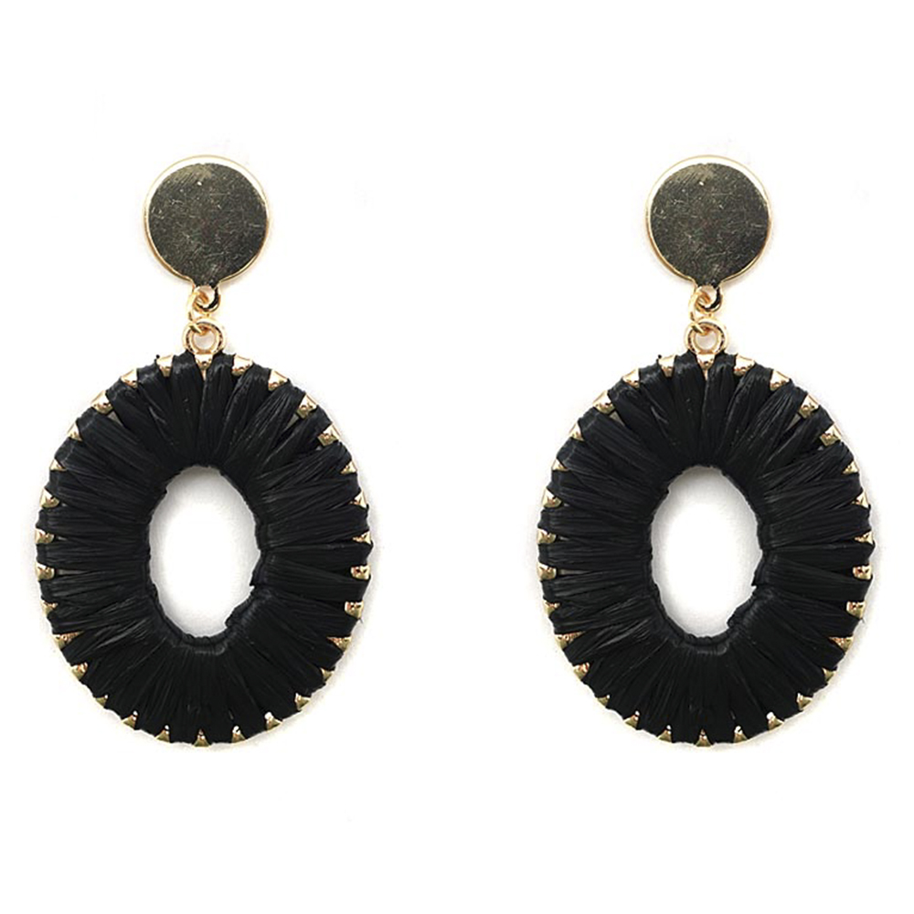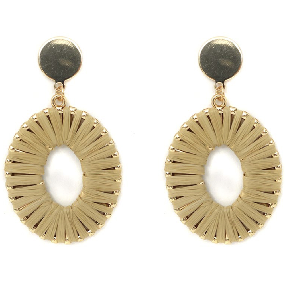 RATTAN ROUND HALF MOON DANGLE EARRING