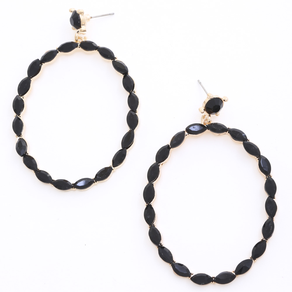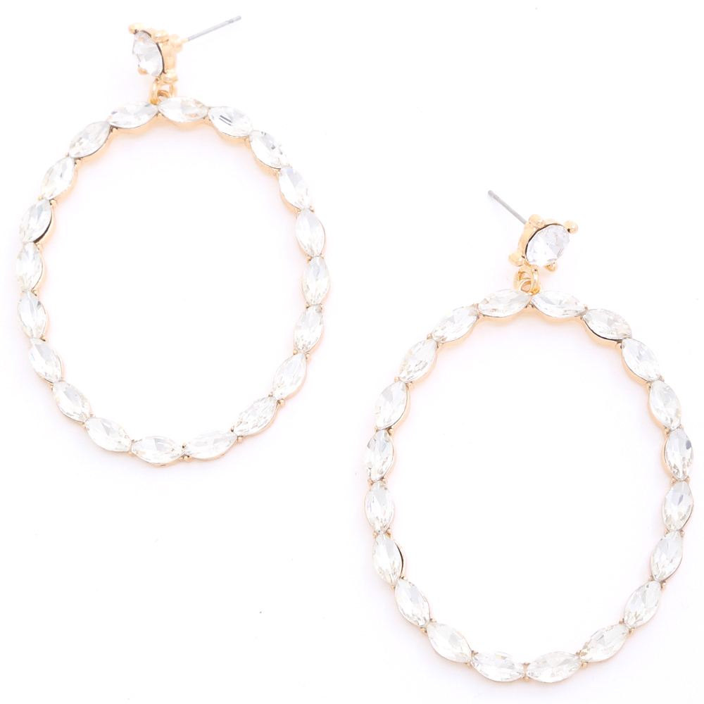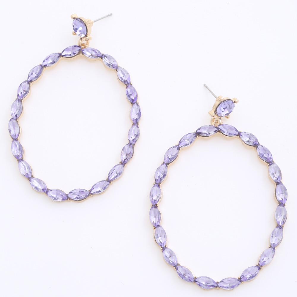 OVAL CRYSTAL EDGE OPEN HOOP EARRING
