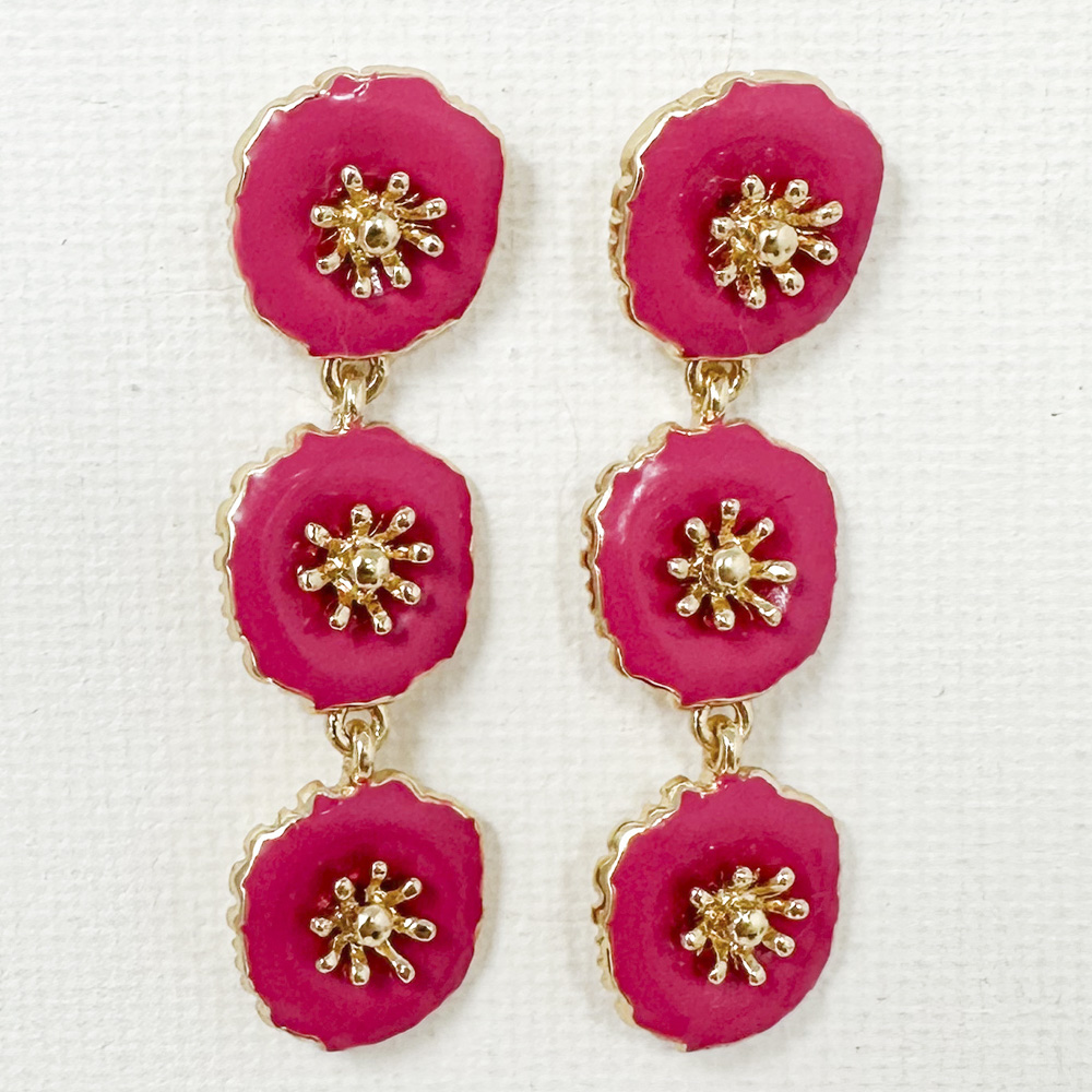 FLOWER DOUBLE CIRCLE POST DROP EARRING