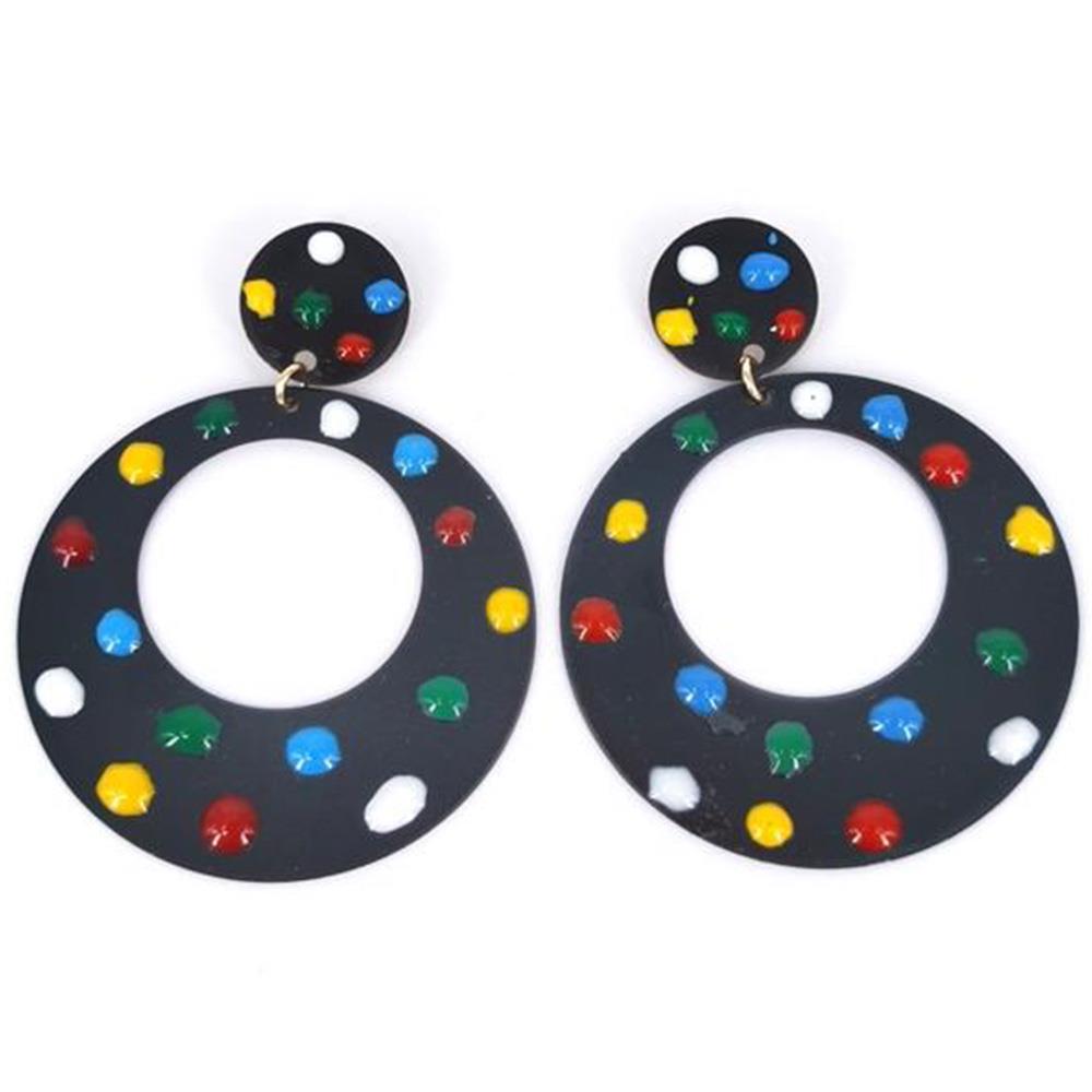 ACETATE METAL FLAKE GEOMETRIC POST ROUNDEARRING