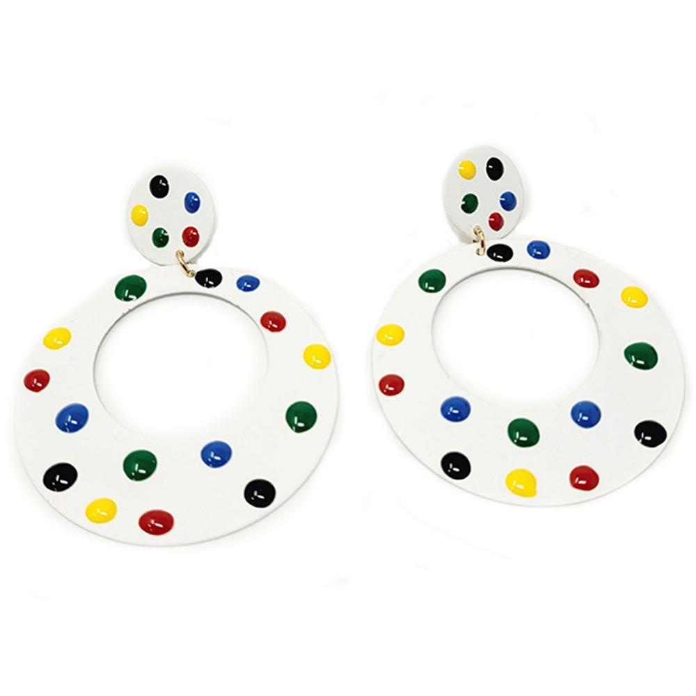 COLOR WOOD BEAD OPEN CIRCLE EARRING