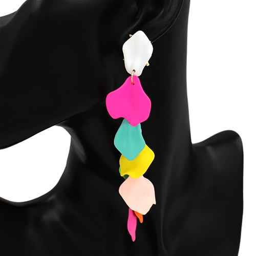 STONE ACETATE BEAD LINK DANGLE EARRING