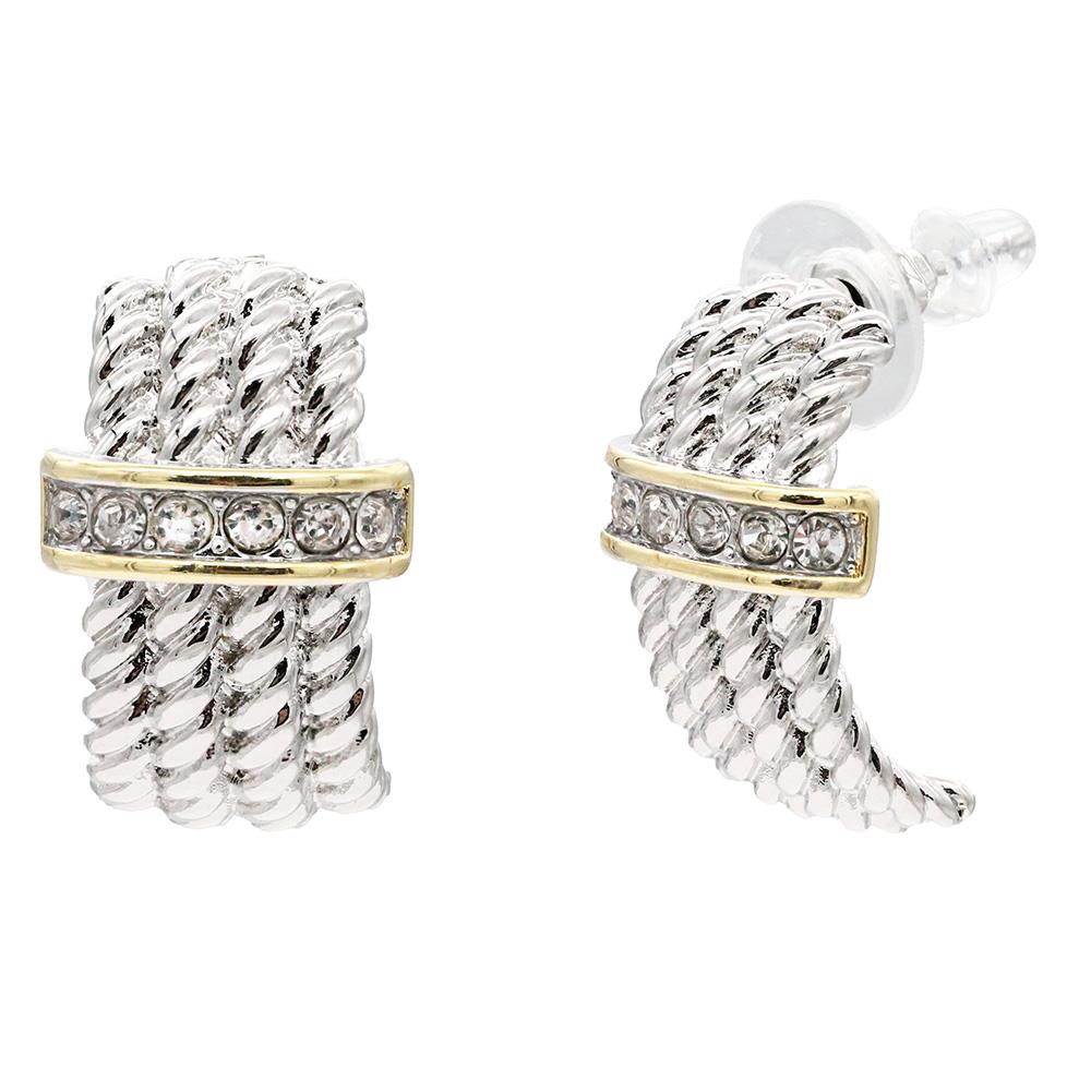 TWO TONE CRISS CROSS OPEN HOOP EARRING