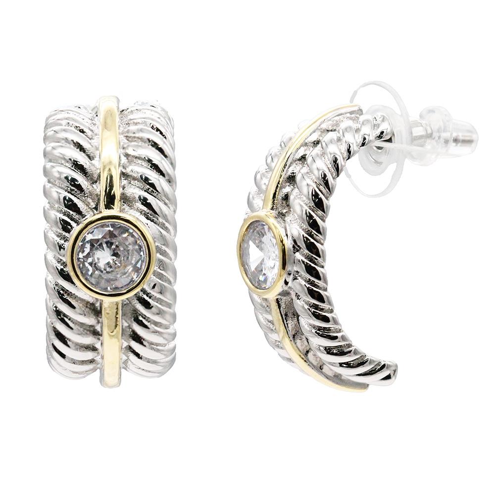 14K GOLD PLATED WITH CLEAR CZ TWO TONE EARRING