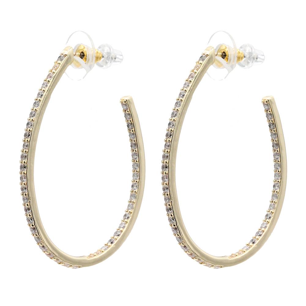 LONG OVAL RHINESTONE EDGE HOOP EARRING