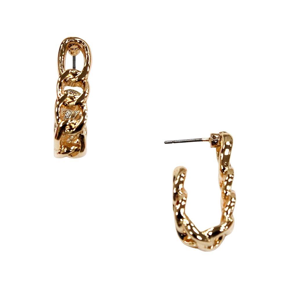 TEXTURED METAL CHAIN LINK HOOP EARRING