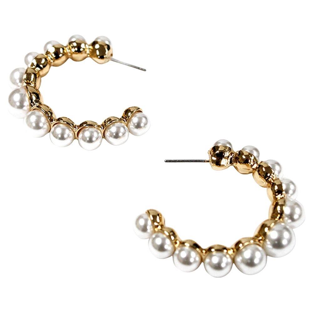 18K BRASS SQUARE PEARL HUGGIE DANGLE EARRING