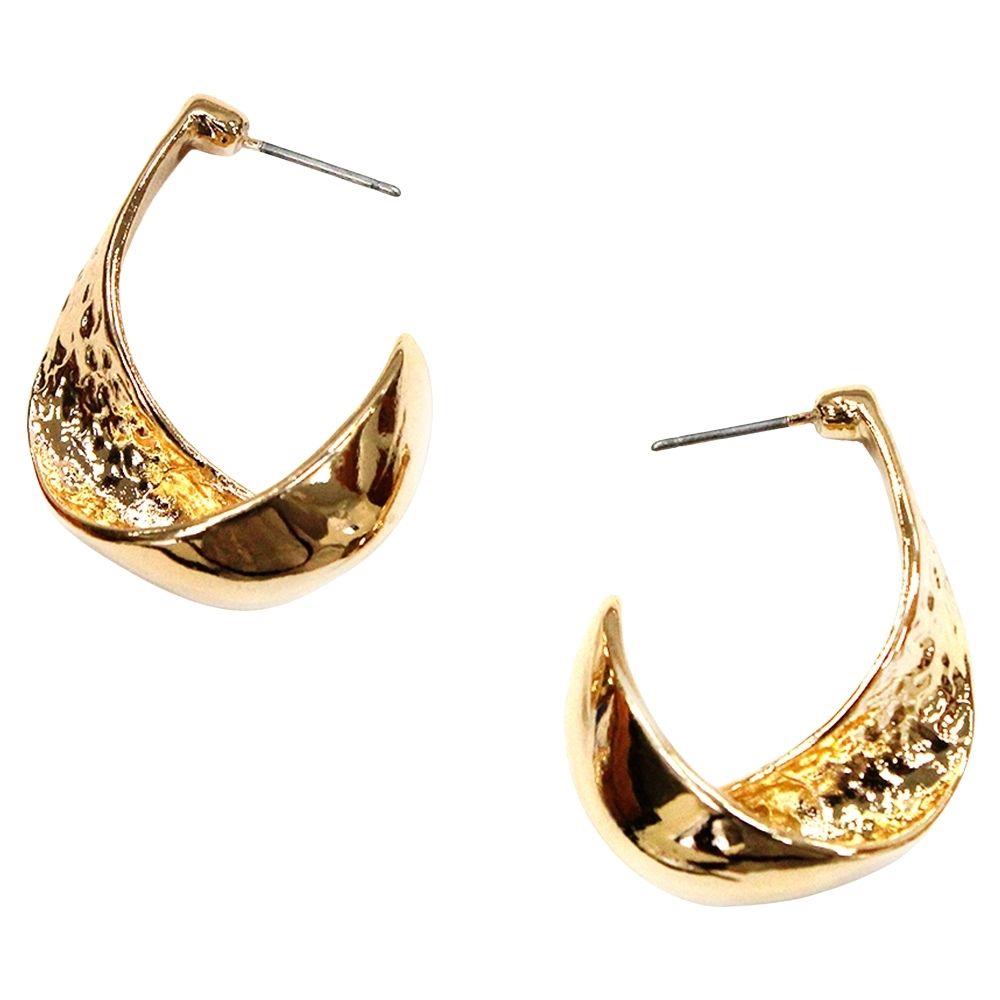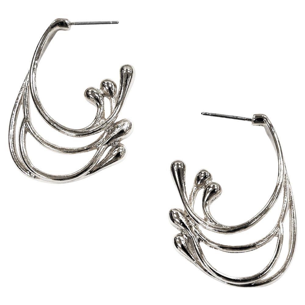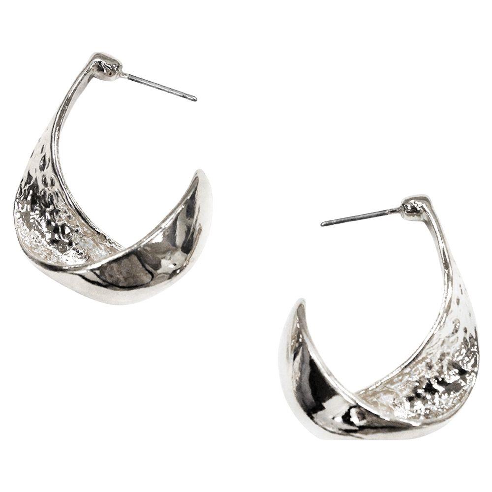 POLISHED METAL ABSTRACT CURVE HOOP EARRING