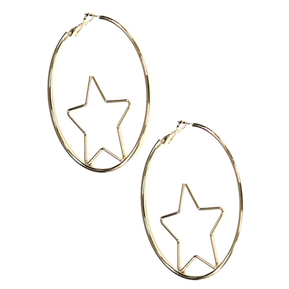 STAR ROUND METAL HOOP EARRING