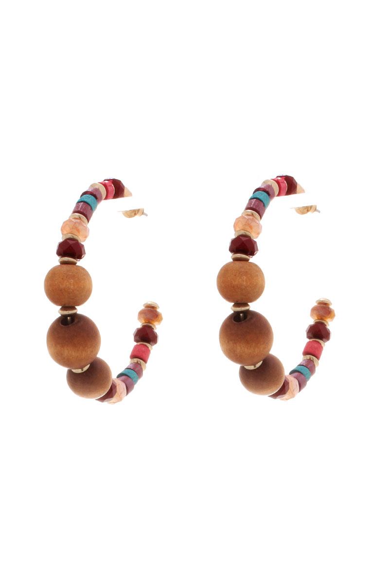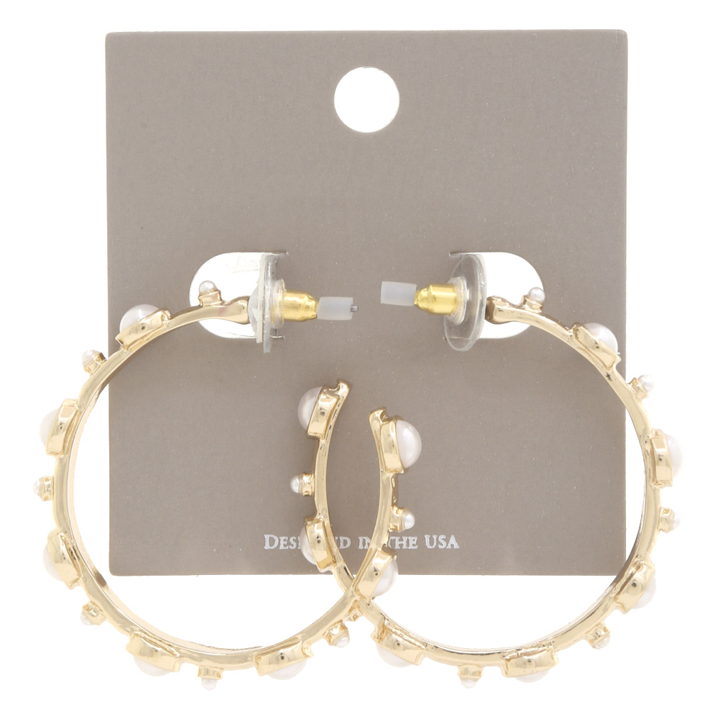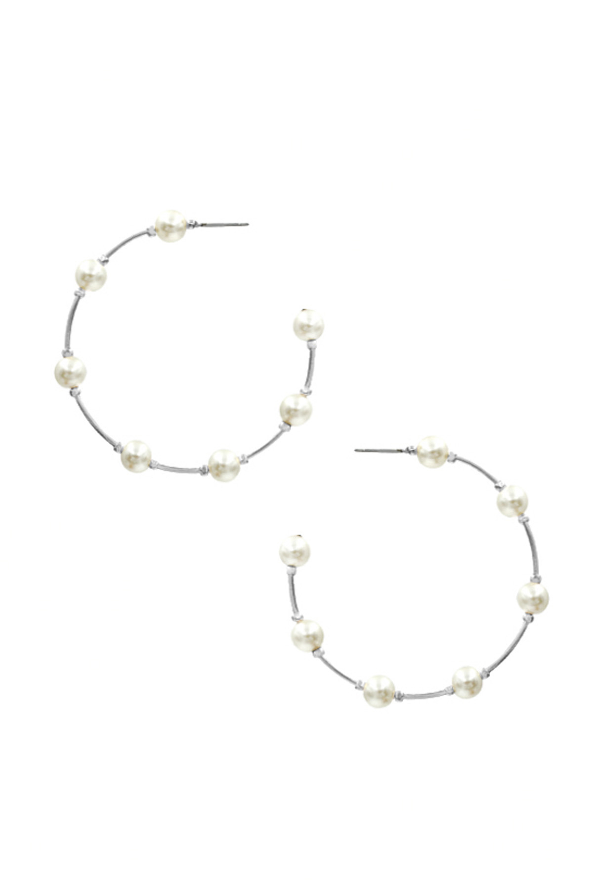 PEARL BEAD HAMMERED METAL OPEN HOOP EARRING