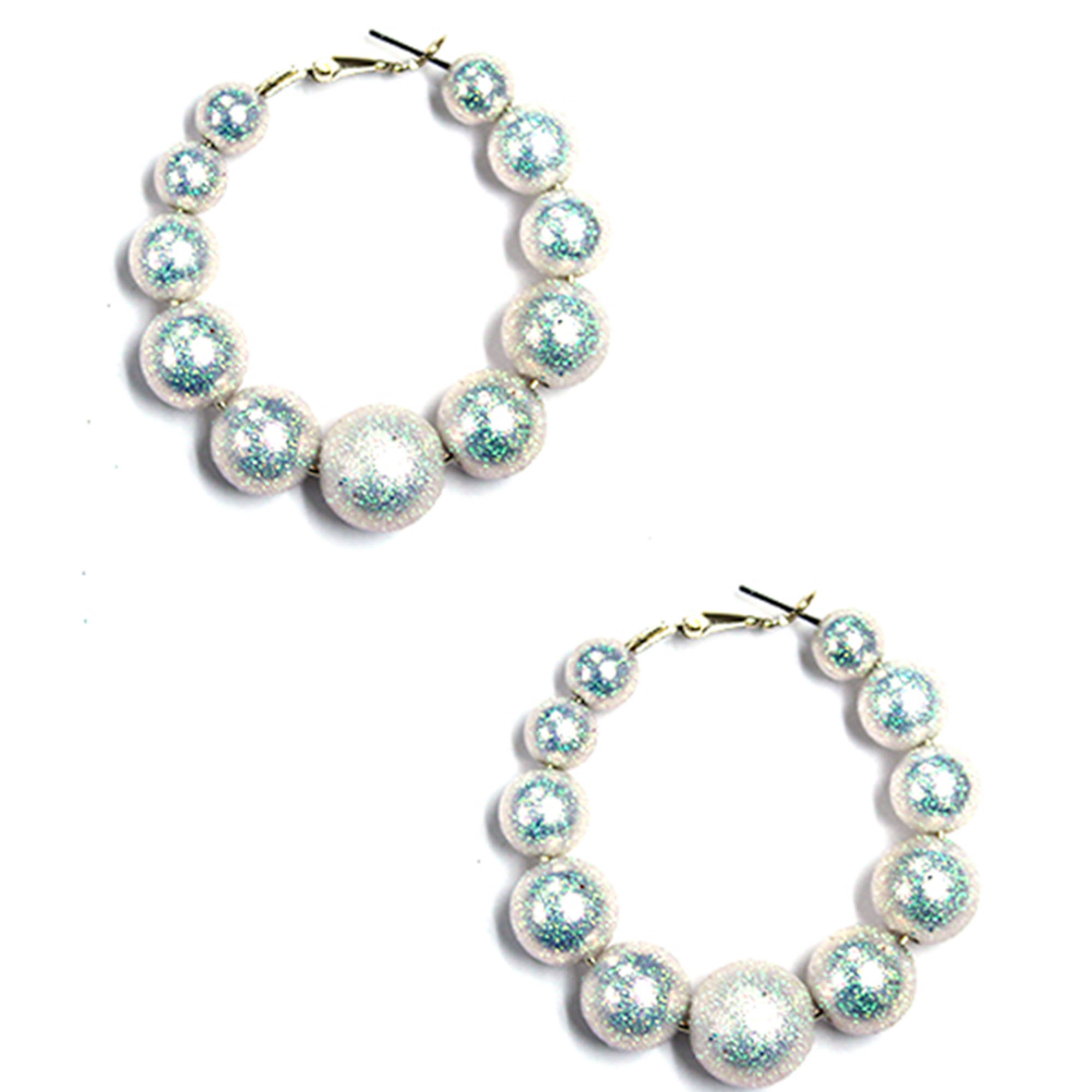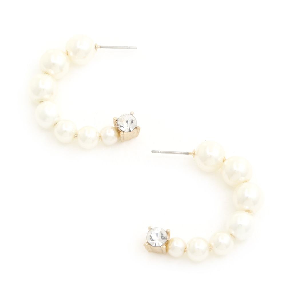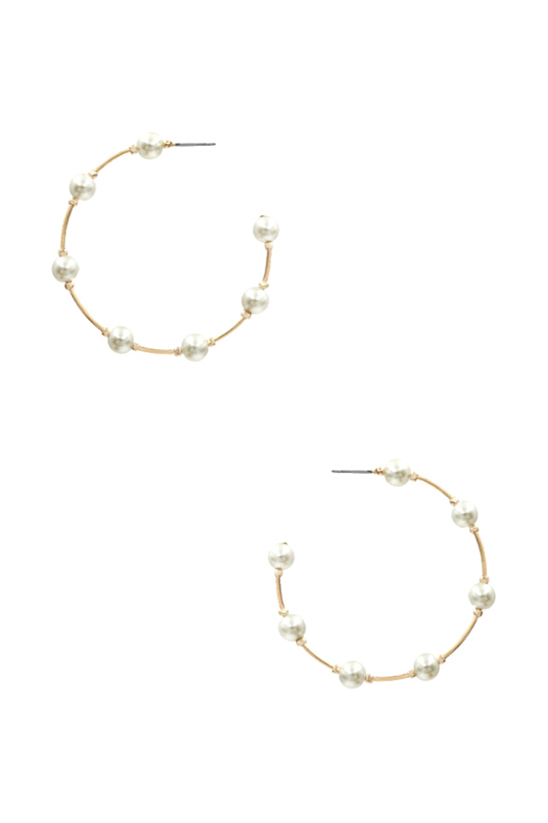 PEARL BEAD METAL CHAIN OPEN HOOP EARRING