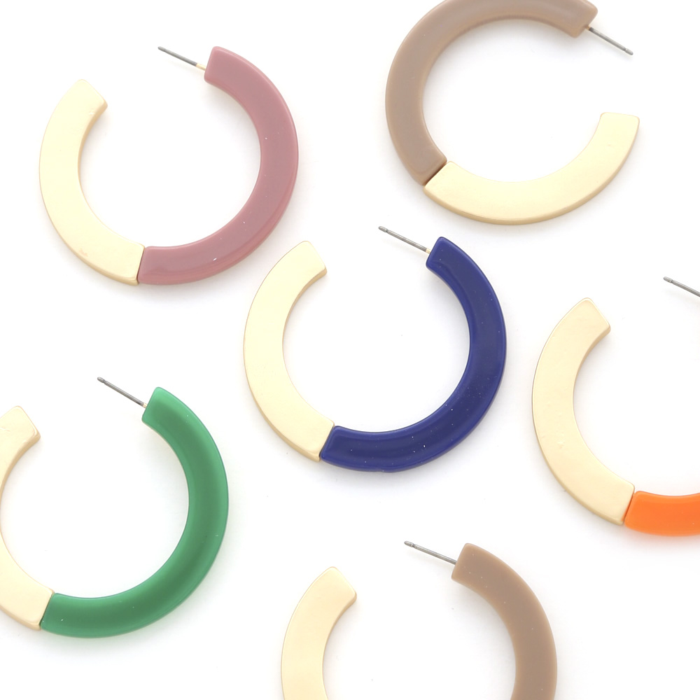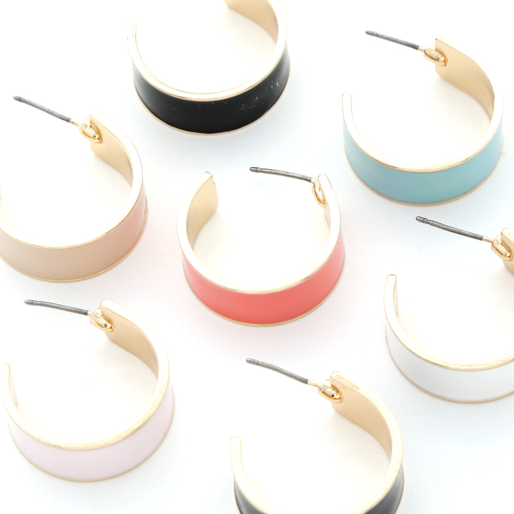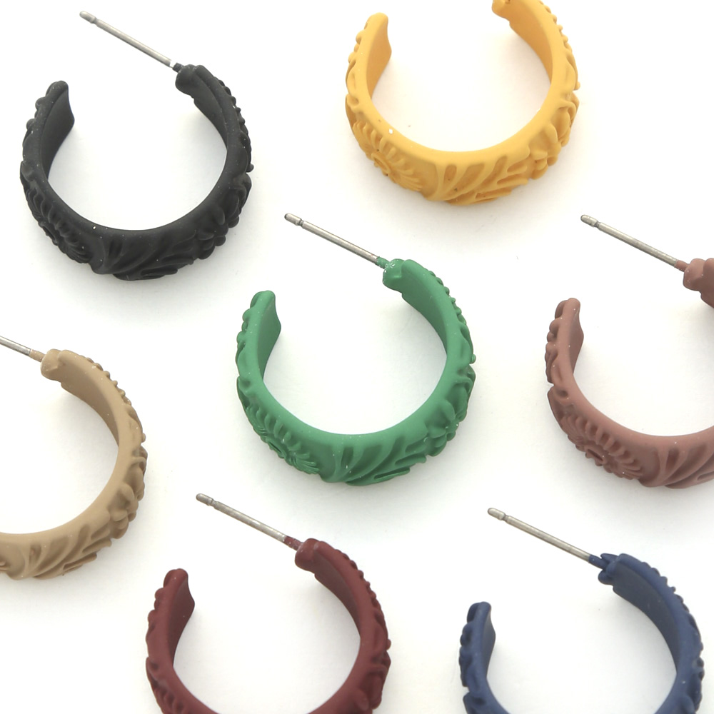 FLOWER PATTERN PAINT METAL OPEN CIRCLE EARRING