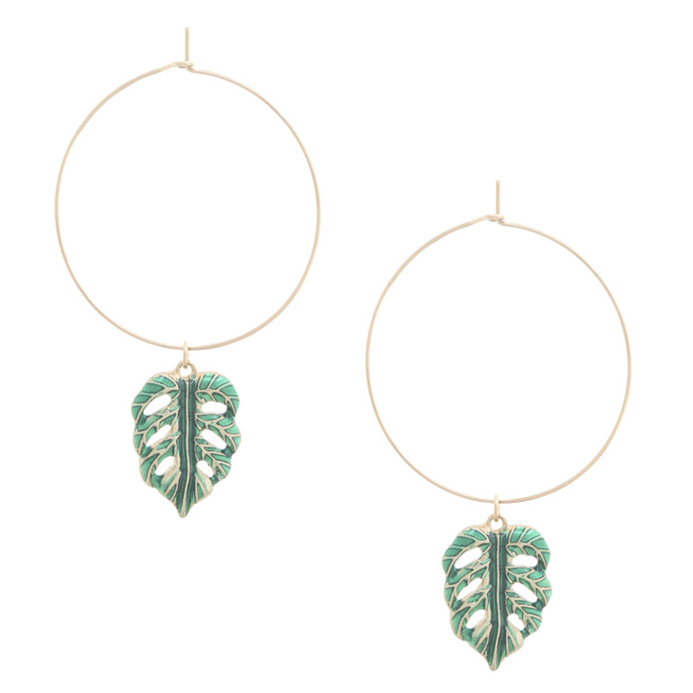 SODAJO TROPICAL LEAF CHARM HOOP EARRING